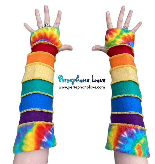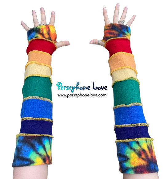 Katwise inspired needle-felted rainbow 100% cashmere upcycled sweater arm warmers-1425