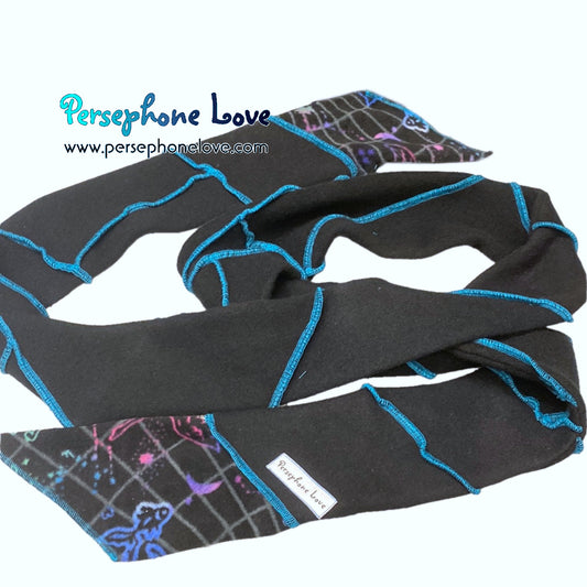 Patchwork black 100% cashmere upcycled needle-felted sweater scarf -1759