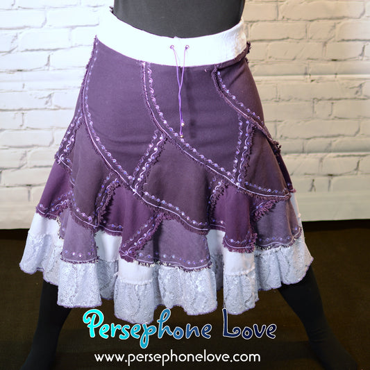 Purple ombre patchwork denim upcycled twirly spiral festival skirt embroidery sequins-2000