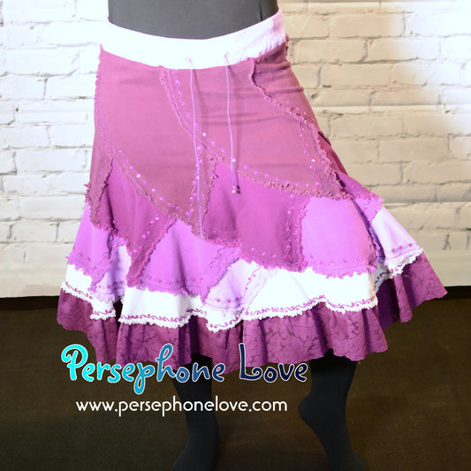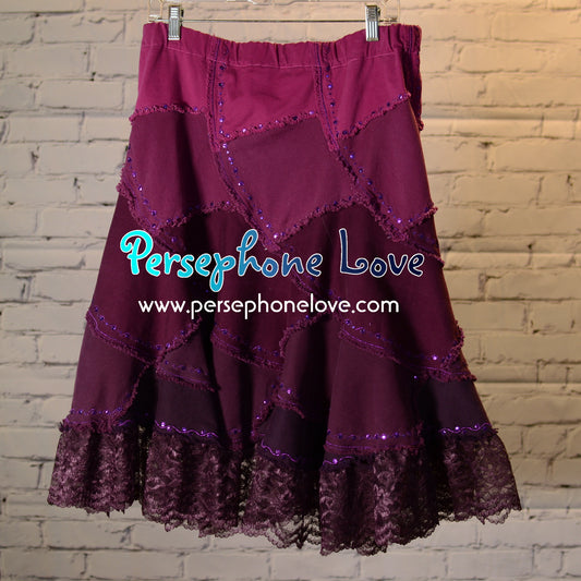 Magenta ombre patchwork denim upcycled twirly spiral festival skirt embroidery sequins-2001