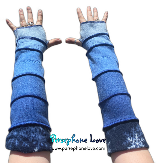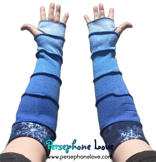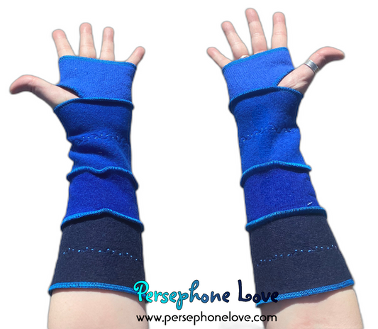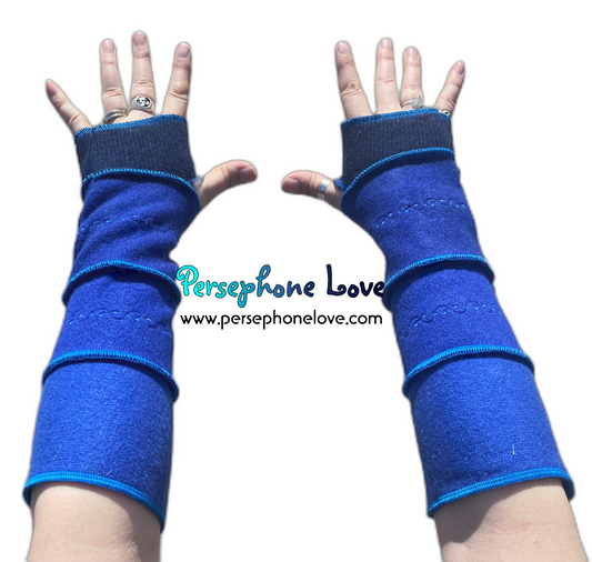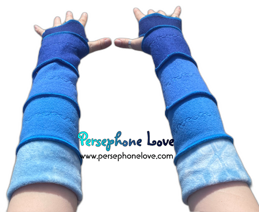 Katwise inspired needle-felted blue 100% cashmere upcycled sweater arm warmers -1498