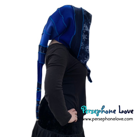 Katwise inspired blue felted cashmere/ merino wool recycled sweater elf hat/hood-1554