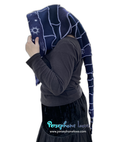Katwise inspired blue felted 100% cashmere recycled sweater elf hat/hood-1514