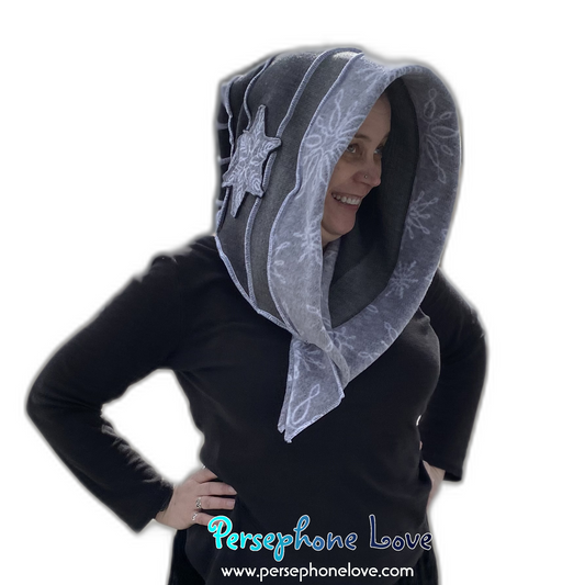 Katwise inspired grey felted 100% cashmere recycled sweater elf hat/hood-1541