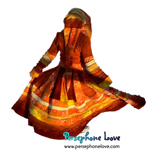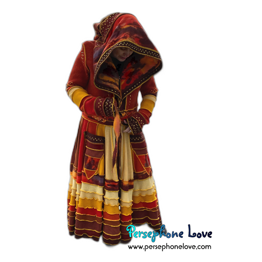 "Sunset" Orange needle-felted wool/cashmere Katwise-inspired patchwork elf sweatercoat-2515