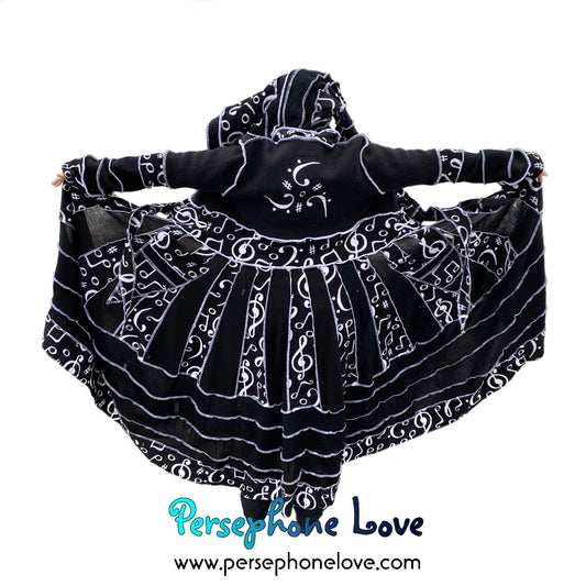 "Music Box Opera" Black white music needle-felted wool/cashmere Katwise inspired sweatercoat-2510