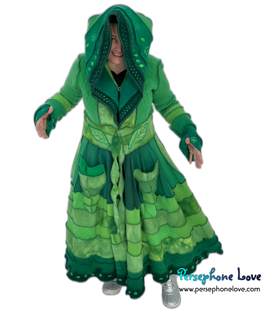 "Zelda" Green elf needle-felted wool/cashmere Katwise-inspired patchwork sweatercoat-2518