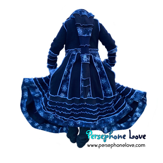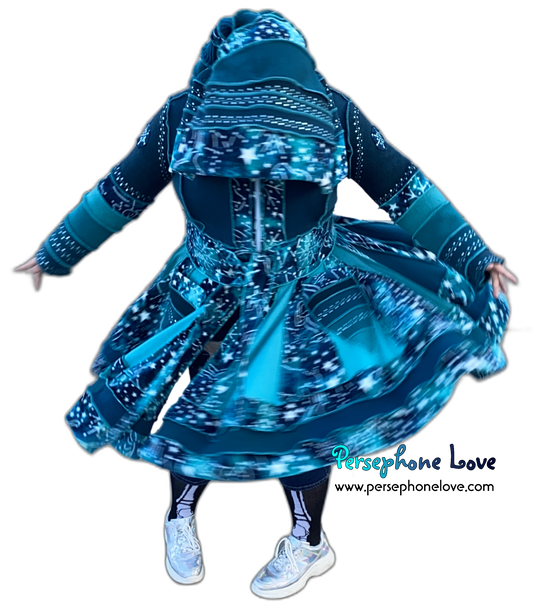"Blue Fires" Snowflake needle-felted wool/cashmere Katwise-inspired sweatercoat-2508