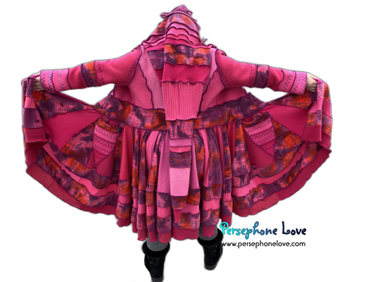 "Pink Lemonade" GODDESS SIZE Hot Pink embroidered/felted cashmere patchwork Katwise-inspired sweatercoat-2527