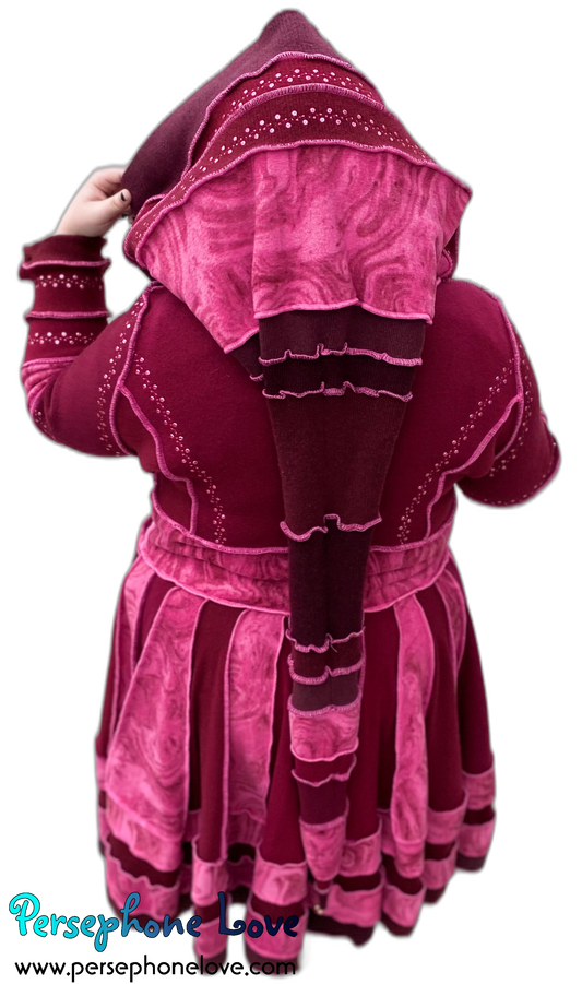 "Magenta Magic" GODDESS SIZE embroidered/felted cashmere Katwise-inspired patchwork sweatercoat-2526
