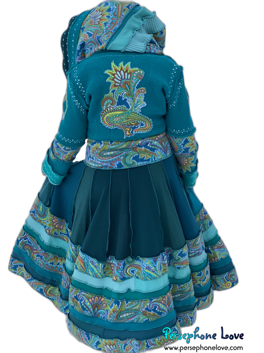"Peacock" Teal Paisley needle-felted wool/cashmere Katwise-inspired patchwork elf sweatercoat-2520 "Peacock"
