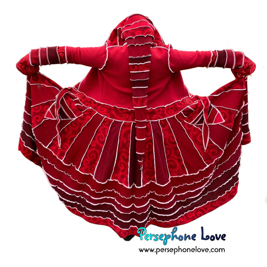 "Stay" Maroon red swirl pattern felted wool/cashmere patchwork Katwise-inspired sweatercoat-2507