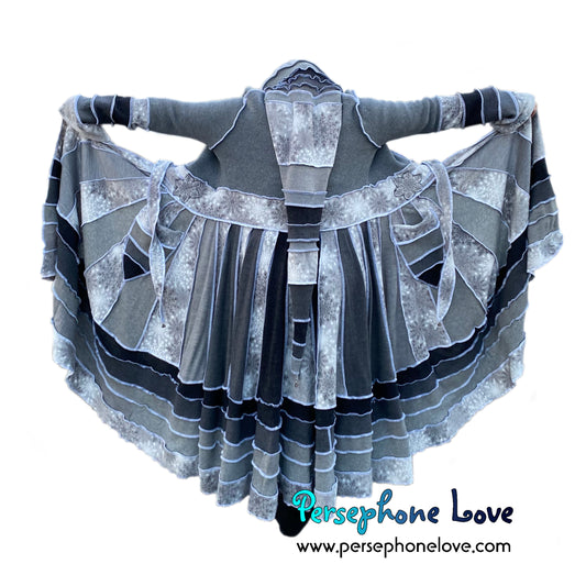 "Winter Wonderland" Grey snowflake needle-felted wool/cashmere Katwise-inspired patchwork sweatercoat-2509