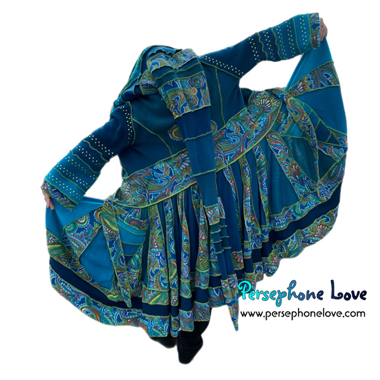 "Magic Dance" Teal Green Paisley felted cashmere/fleece Katwise-inspired sequin sweatercoat-2530 "Magic Dance"