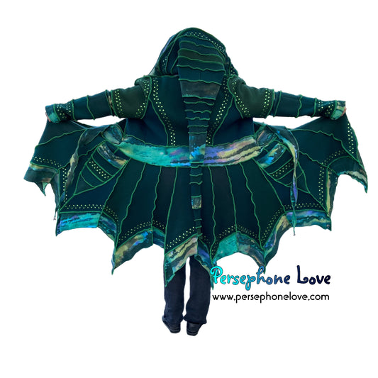 "Monarch" Teal pixie felted cashmere/fleece Katwise-inspired sequin sweatercoat-2588