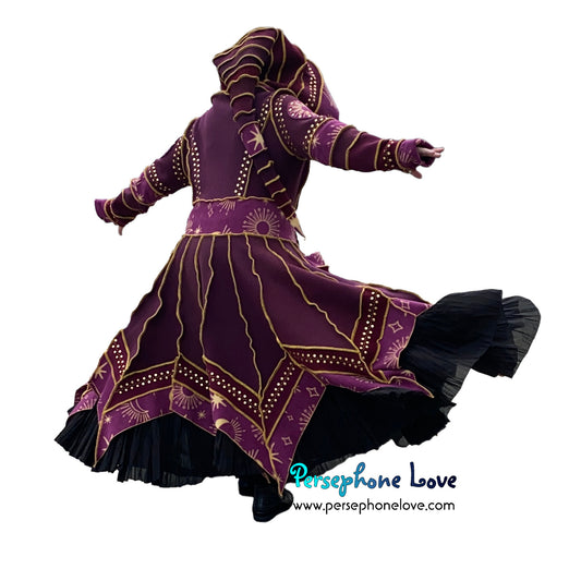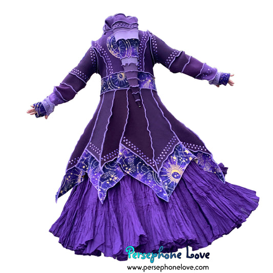 "Sitting on the Moon" magenta celestial pixie felted 100% cashmere/fleece Katwise-inspired sequin sweatercoat-2581