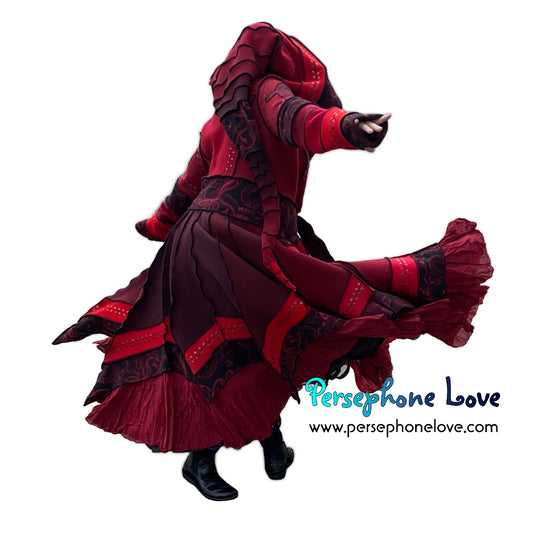 "Angels" Red pixie felted 100% cashmere/fleece Katwise-inspired sequin sweatercoat-2580