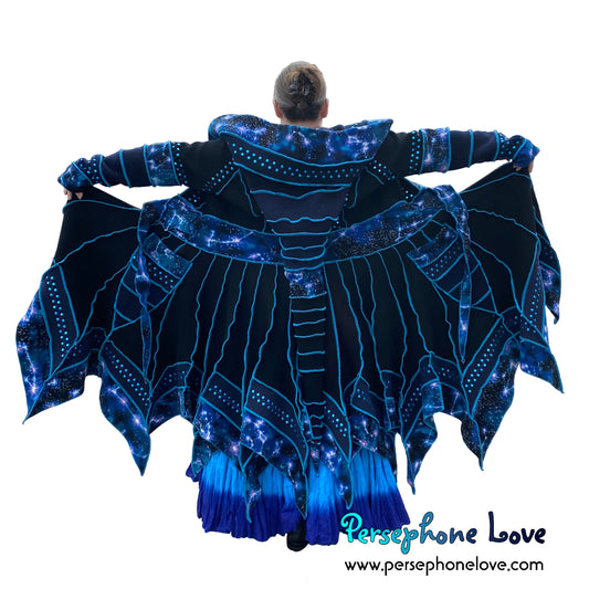 "Starlight" black and blue celestial pixie felted 100% cashmere/fleece Katwise-inspired sequin sweatercoat-2582
