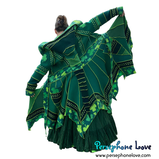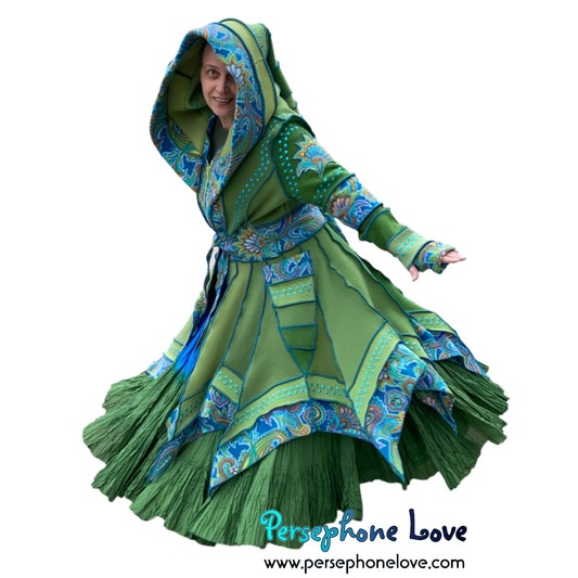 “Callirus” Green pixie felted cashmere/wool/fleece Katwise-inspired sequin sweatercoat-2569