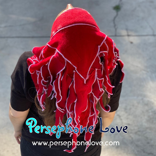 Katwise inspired red felted 100% cashmere/fleece recycled sweater dreadlock hat-1473