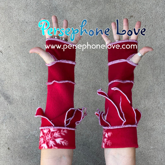 Katwise inspired needle-felted red white 100% cashmere/fleece upcycled sweater arm warmers -1468