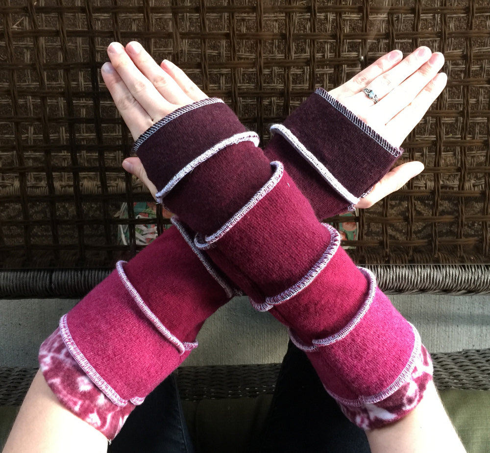 Katwise inspired needle-felted berry upcycled sweater arm warmers-1306