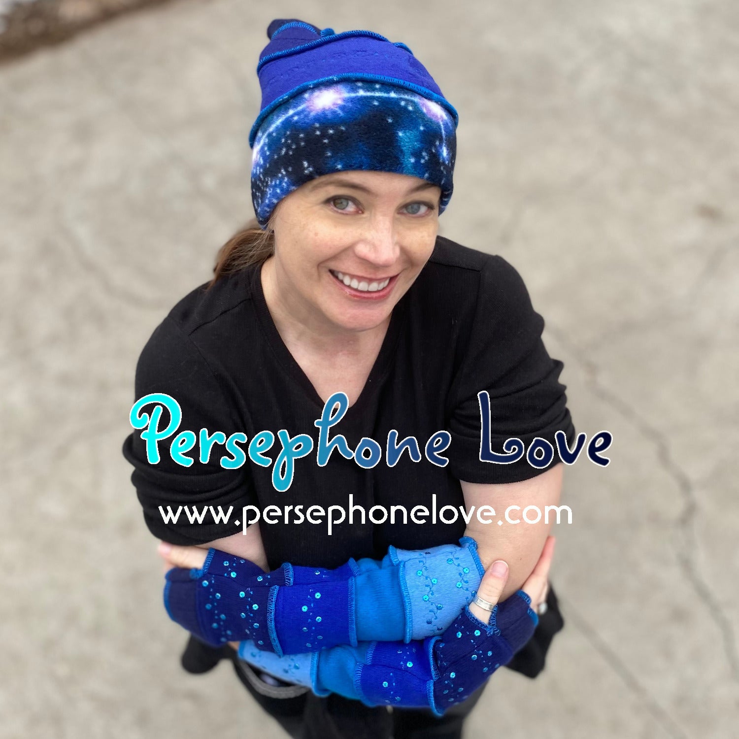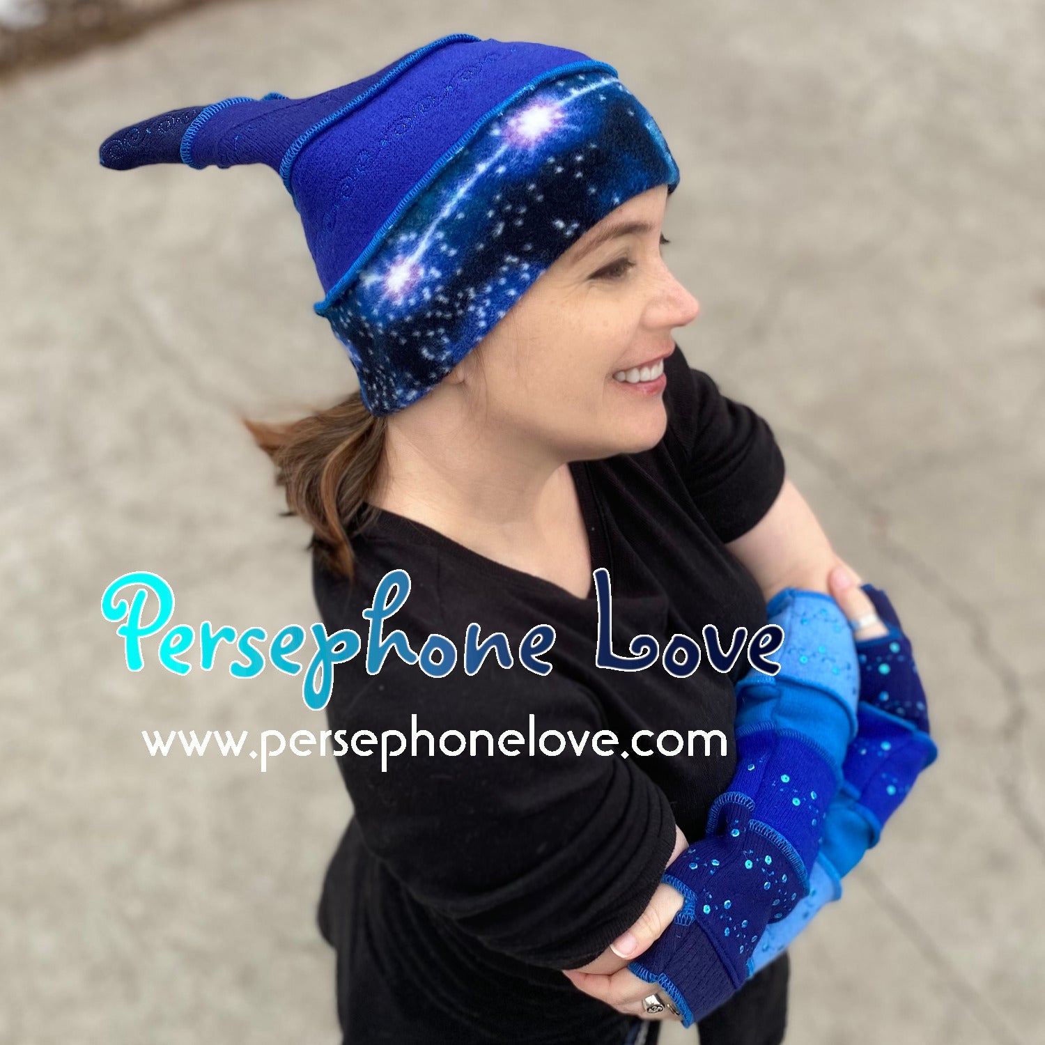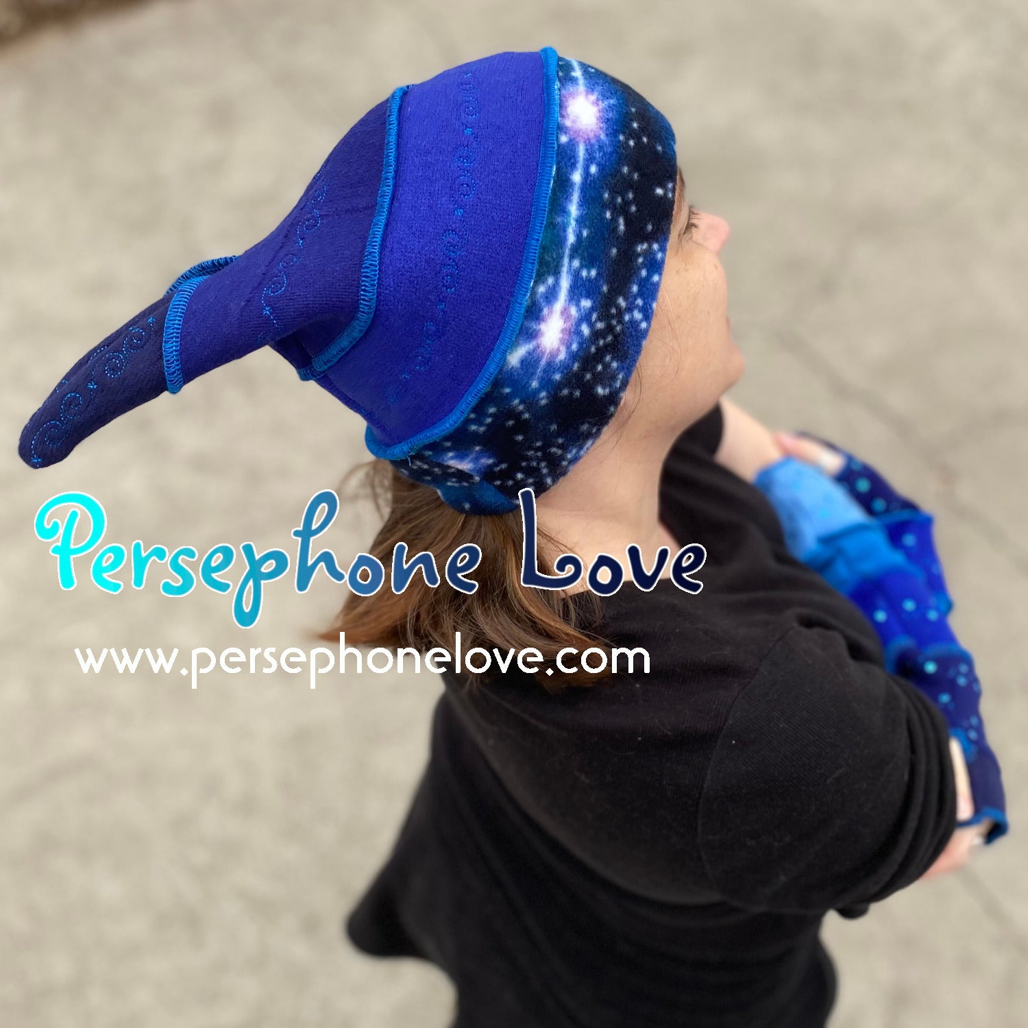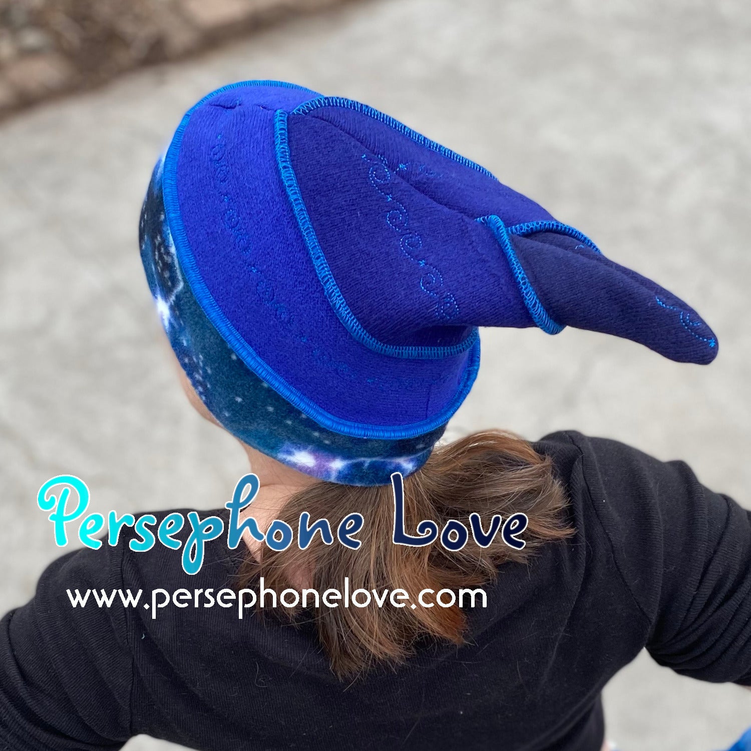 Katwise inspired blue felted and embroidered galaxy pixie elf hat-1386