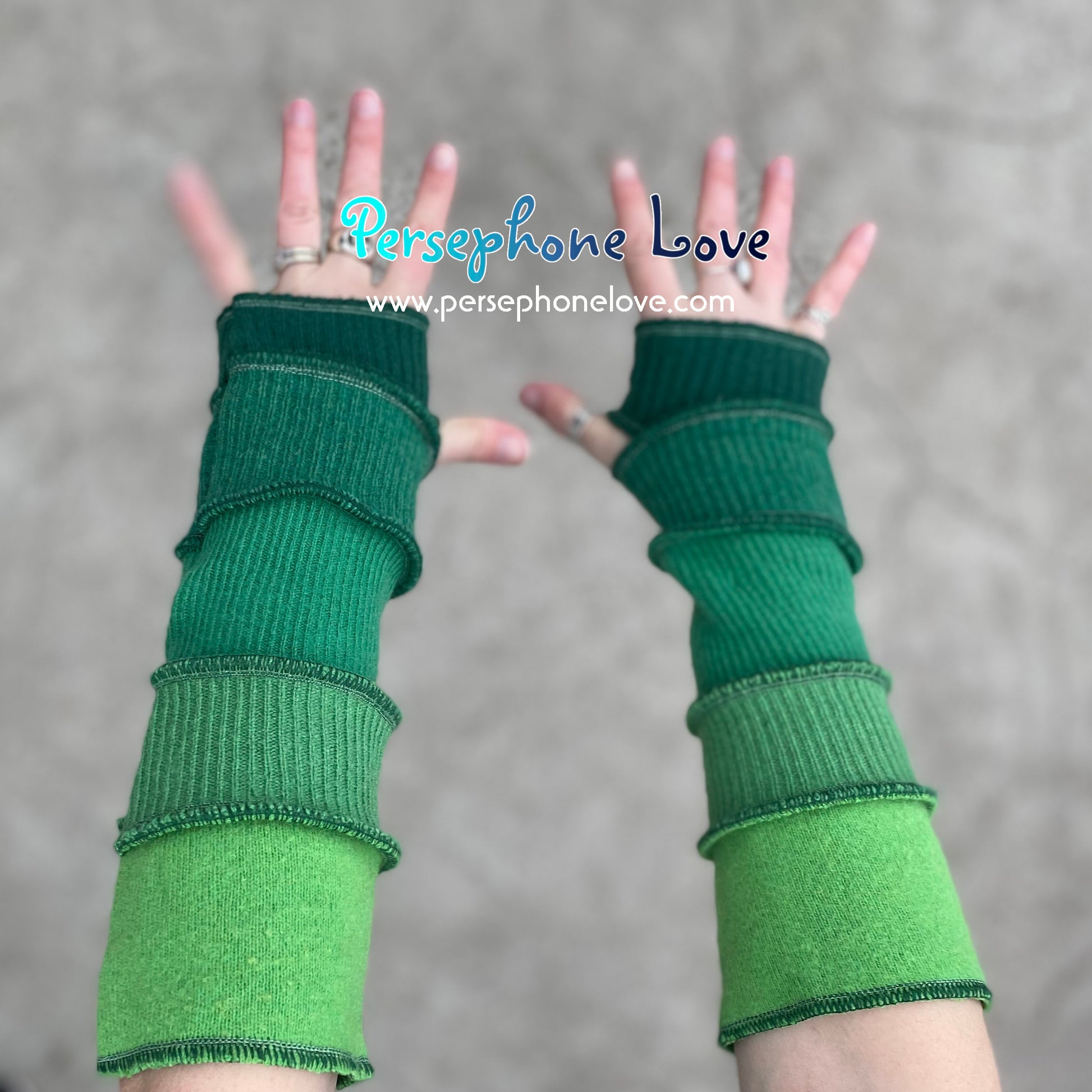 Katwise inspired needle-felted green upcycled sweater arm warmers-1371