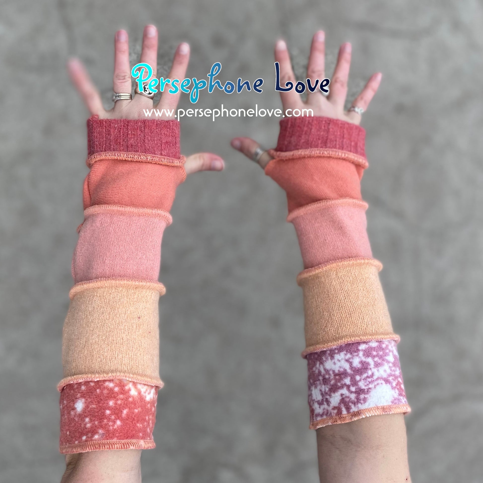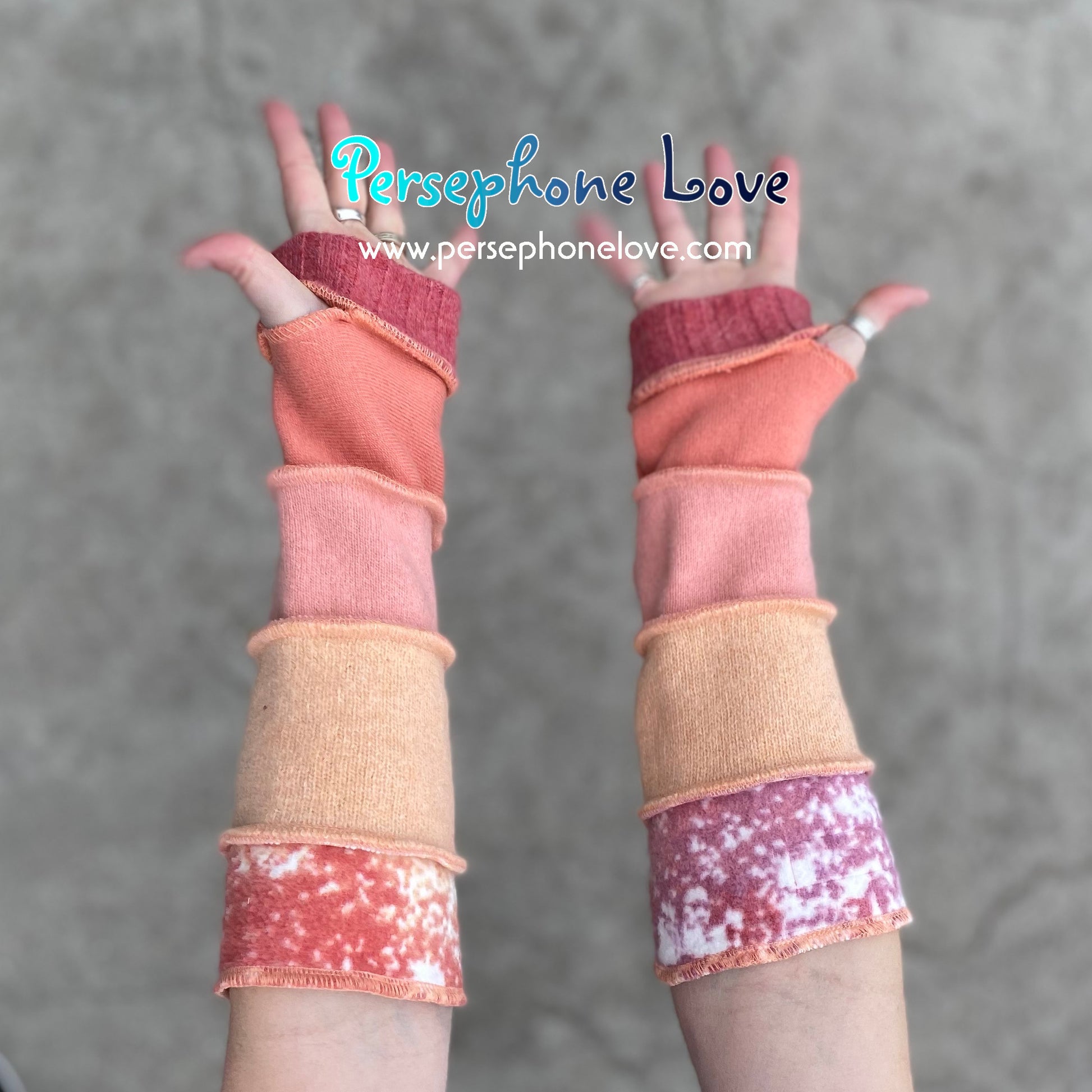 Katwise inspired needle-felted peach galaxy upcycled sweater arm warmers-1377