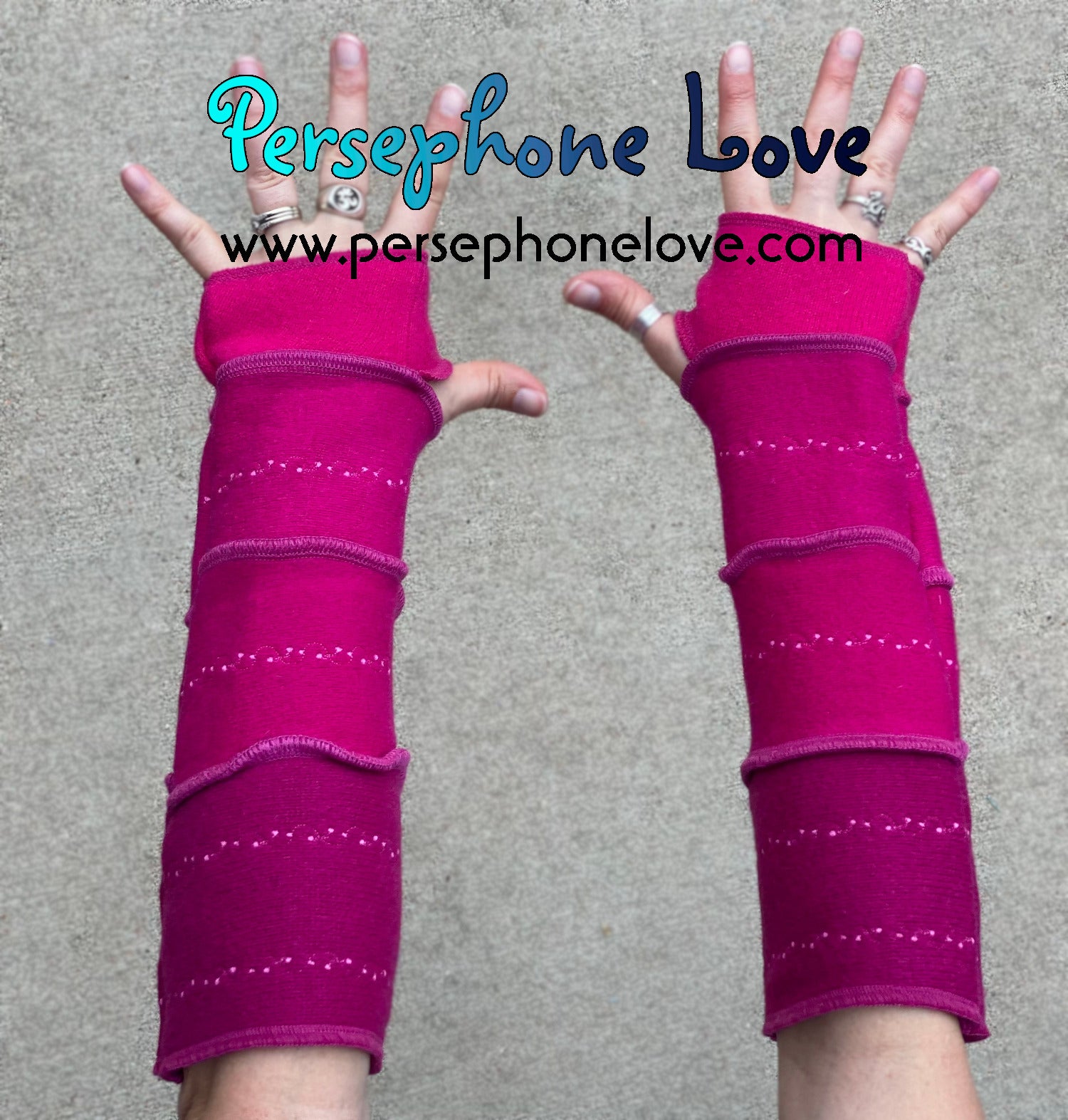 Katwise inspired needle-felted pink 100% cashmere embroidered upcycled sweater arm warmers-1415