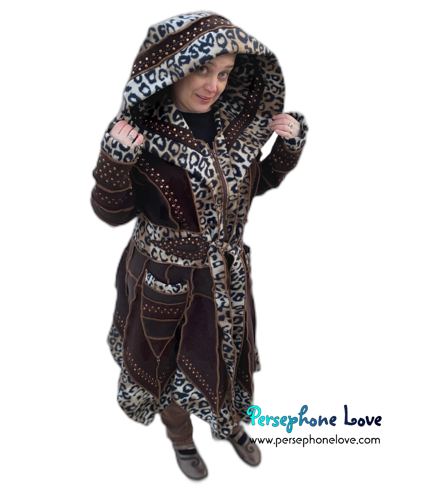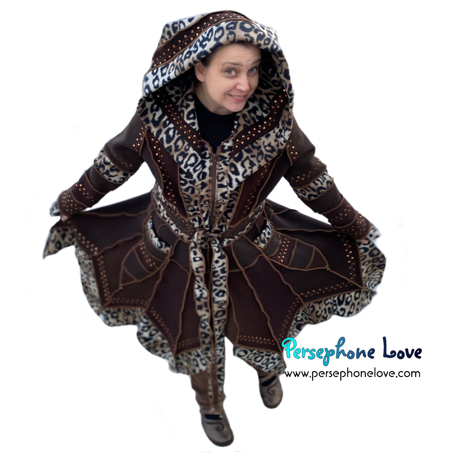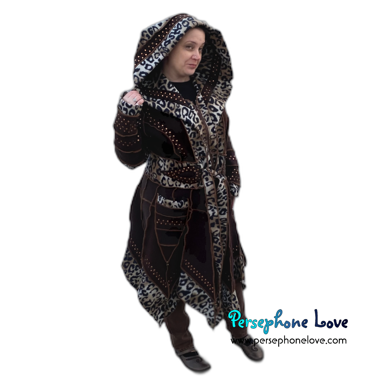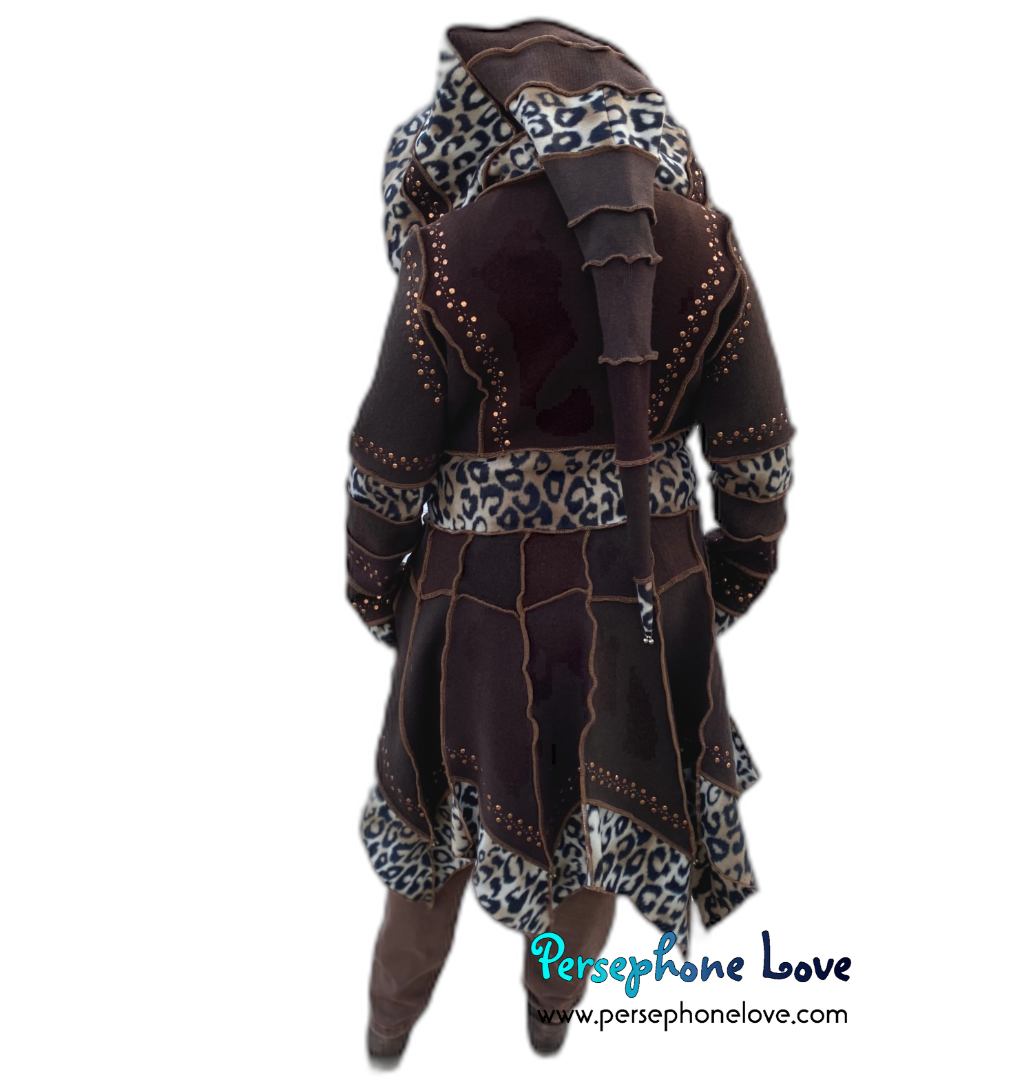 "Amazonia" GODDESS SIZE Brown pixie felted cashmere/fleece Katwise-inspired sequin sweatercoat-2559