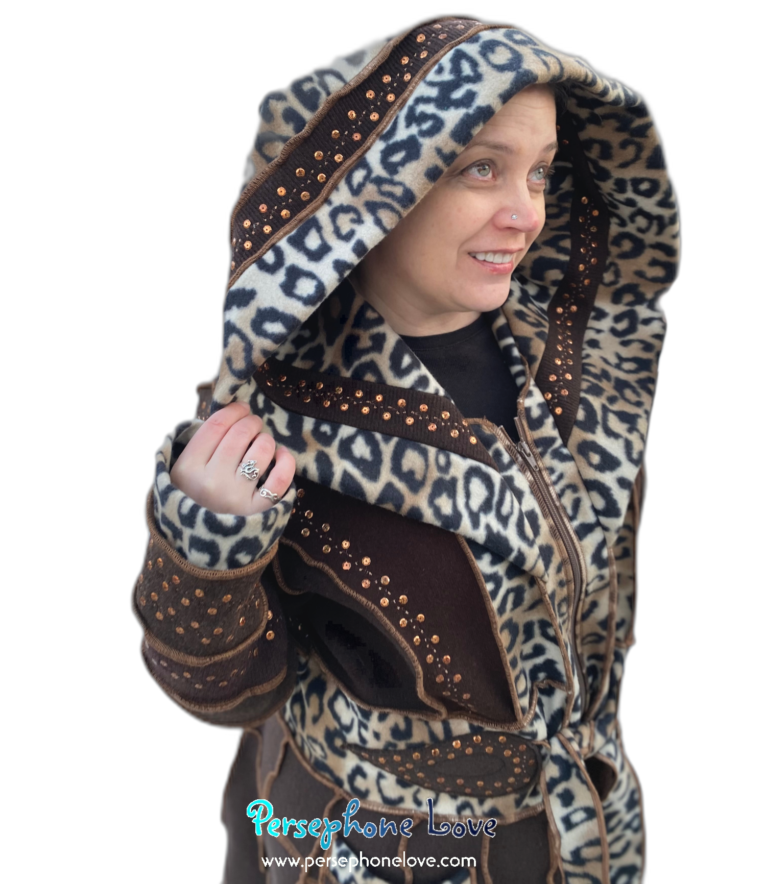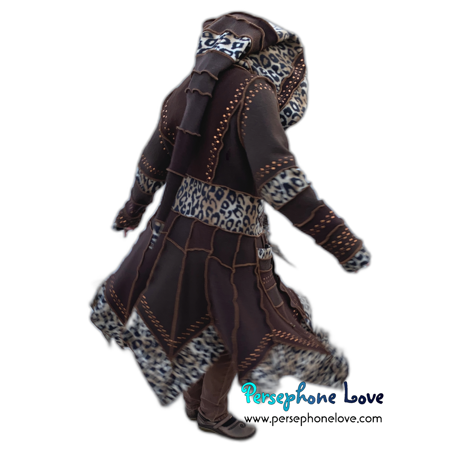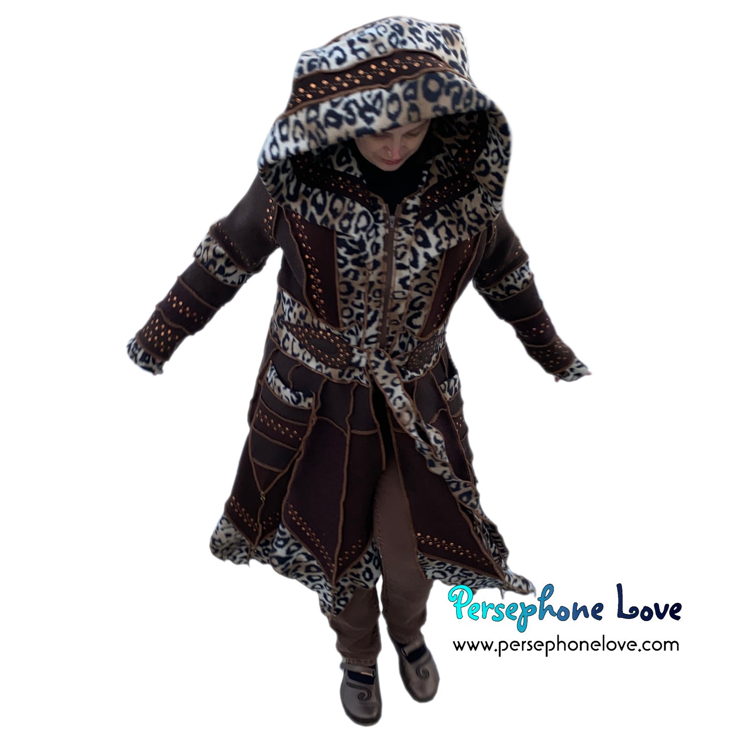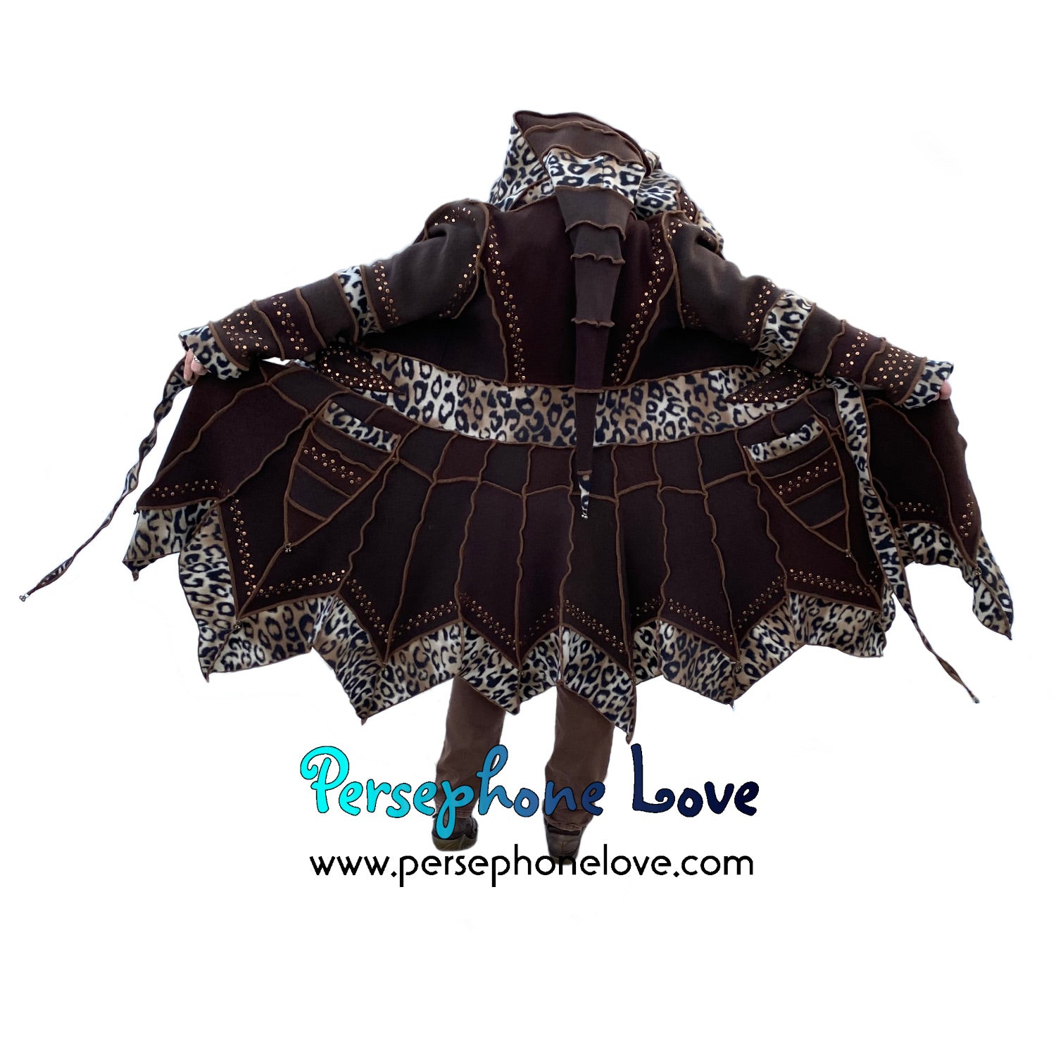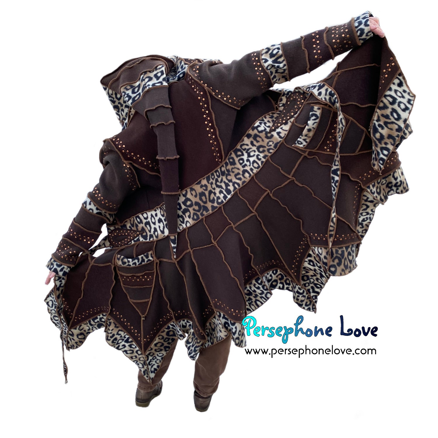 "Amazonia" GODDESS SIZE Brown pixie felted cashmere/fleece Katwise-inspired sequin sweatercoat-2559