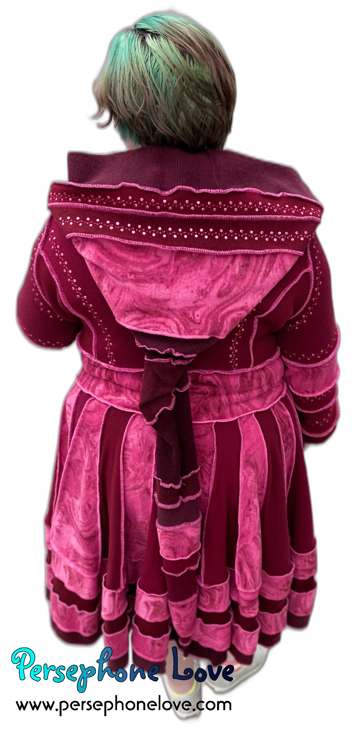 "Say My Name" GODDESS SIZE Red/Pink embroidered/felted/sequins cashmere patchwork Katwise-inspired sweatercoat-2533