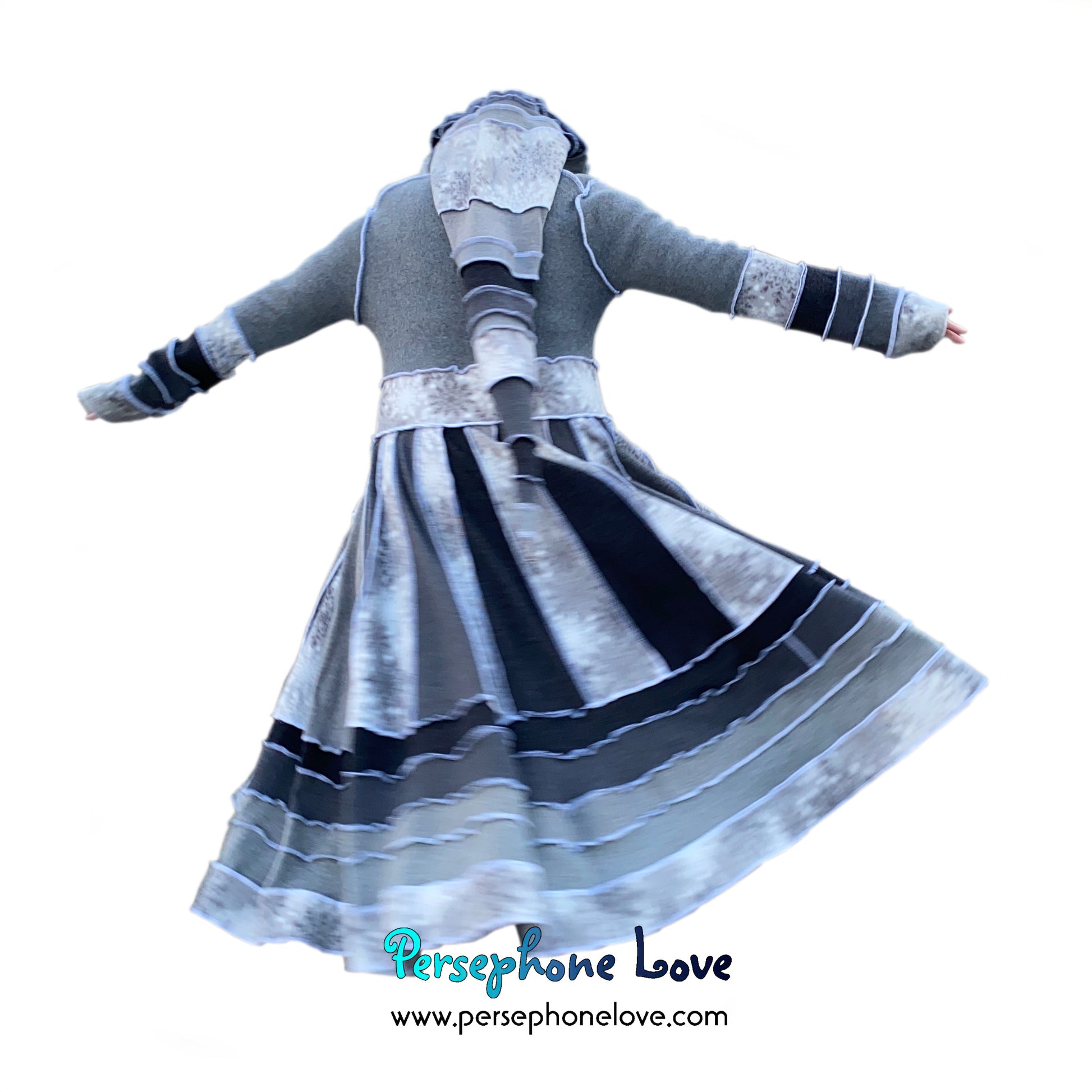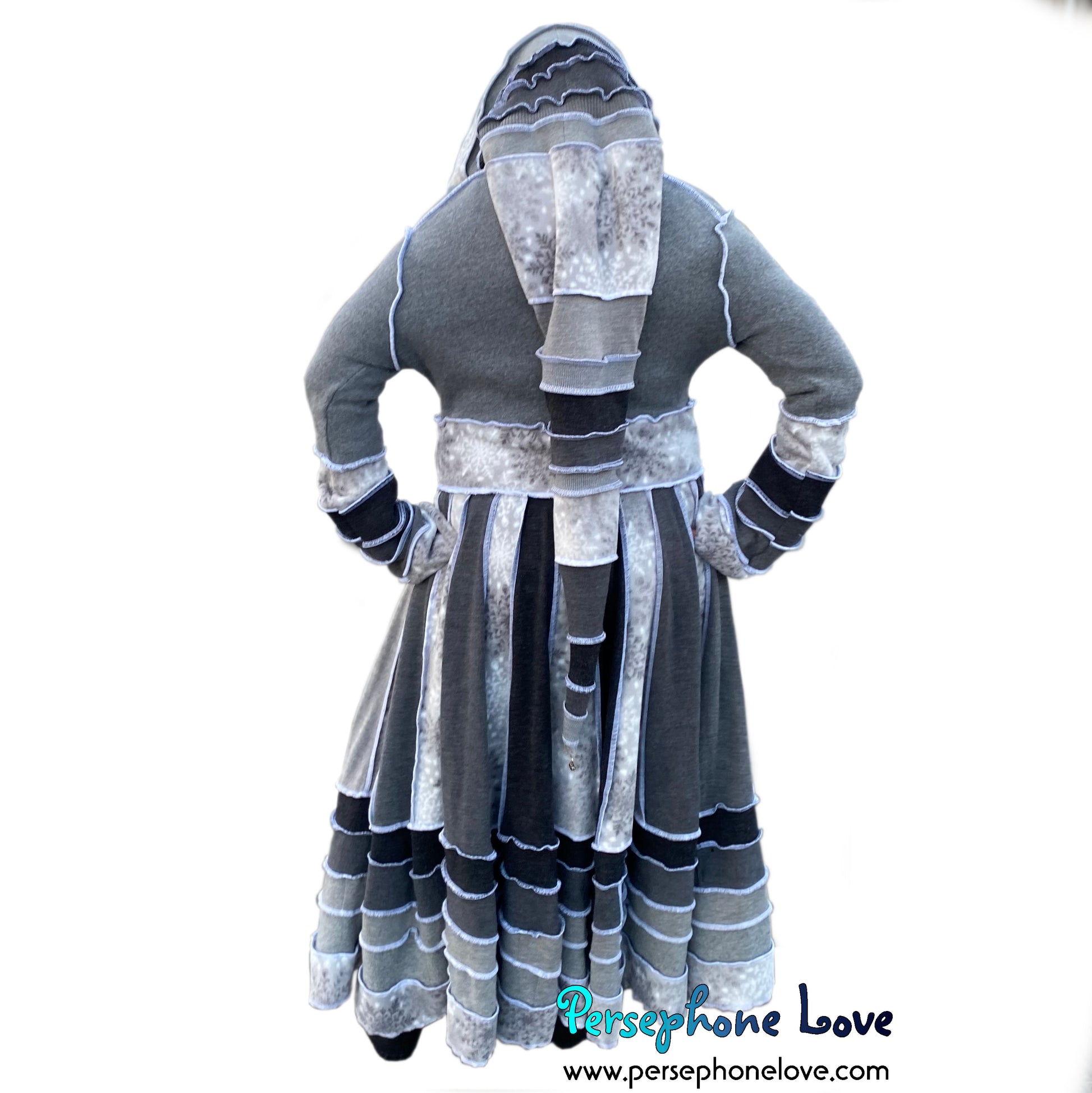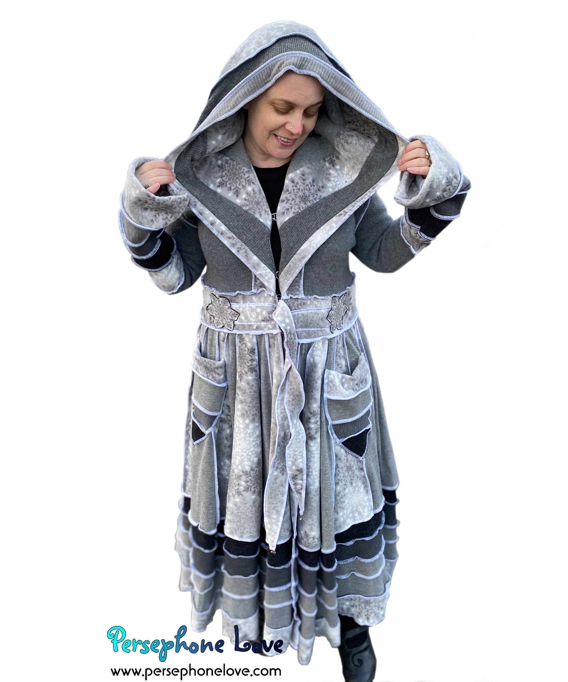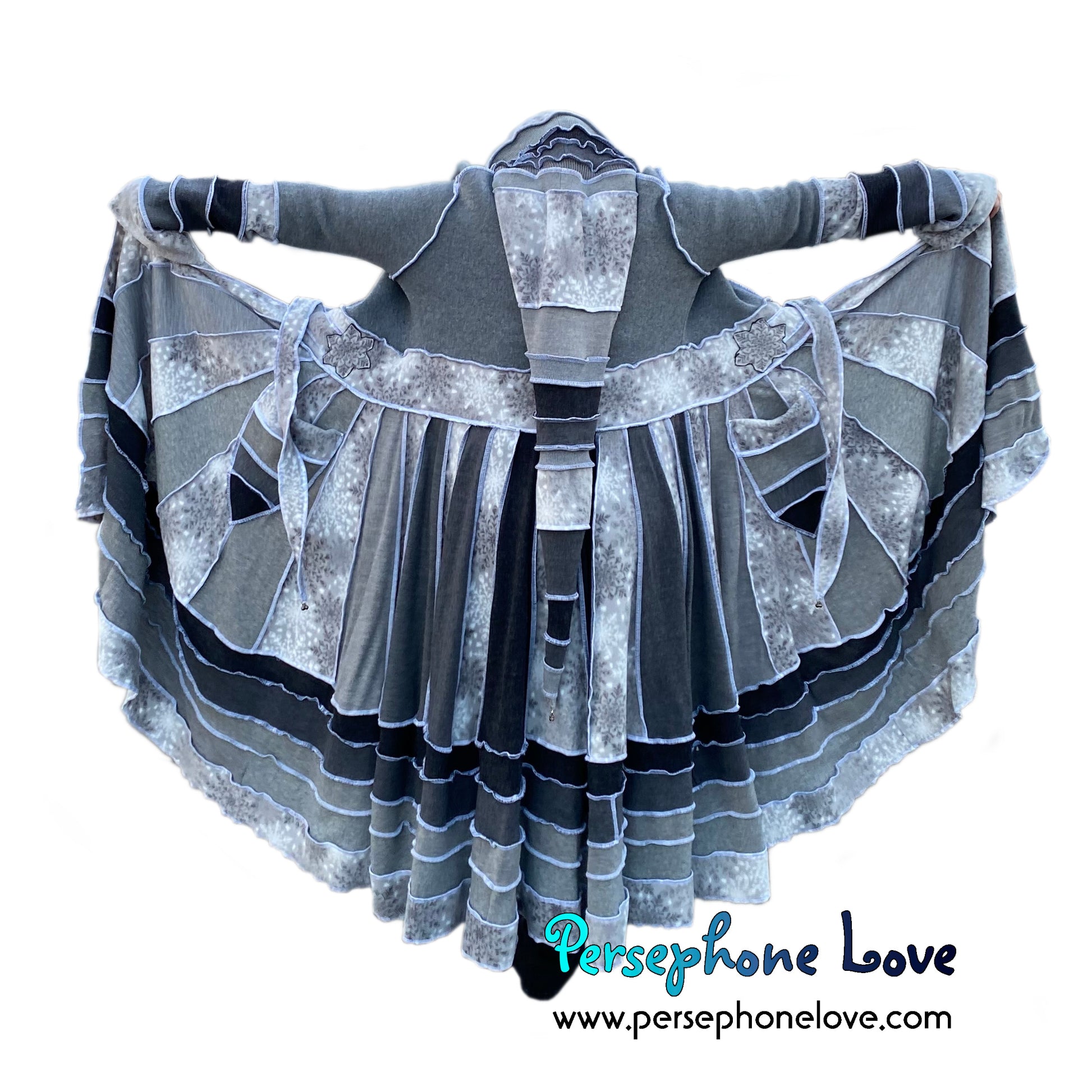 "Winter Wonderland" Grey snowflake needle-felted wool/cashmere Katwise-inspired patchwork sweatercoat-2509
