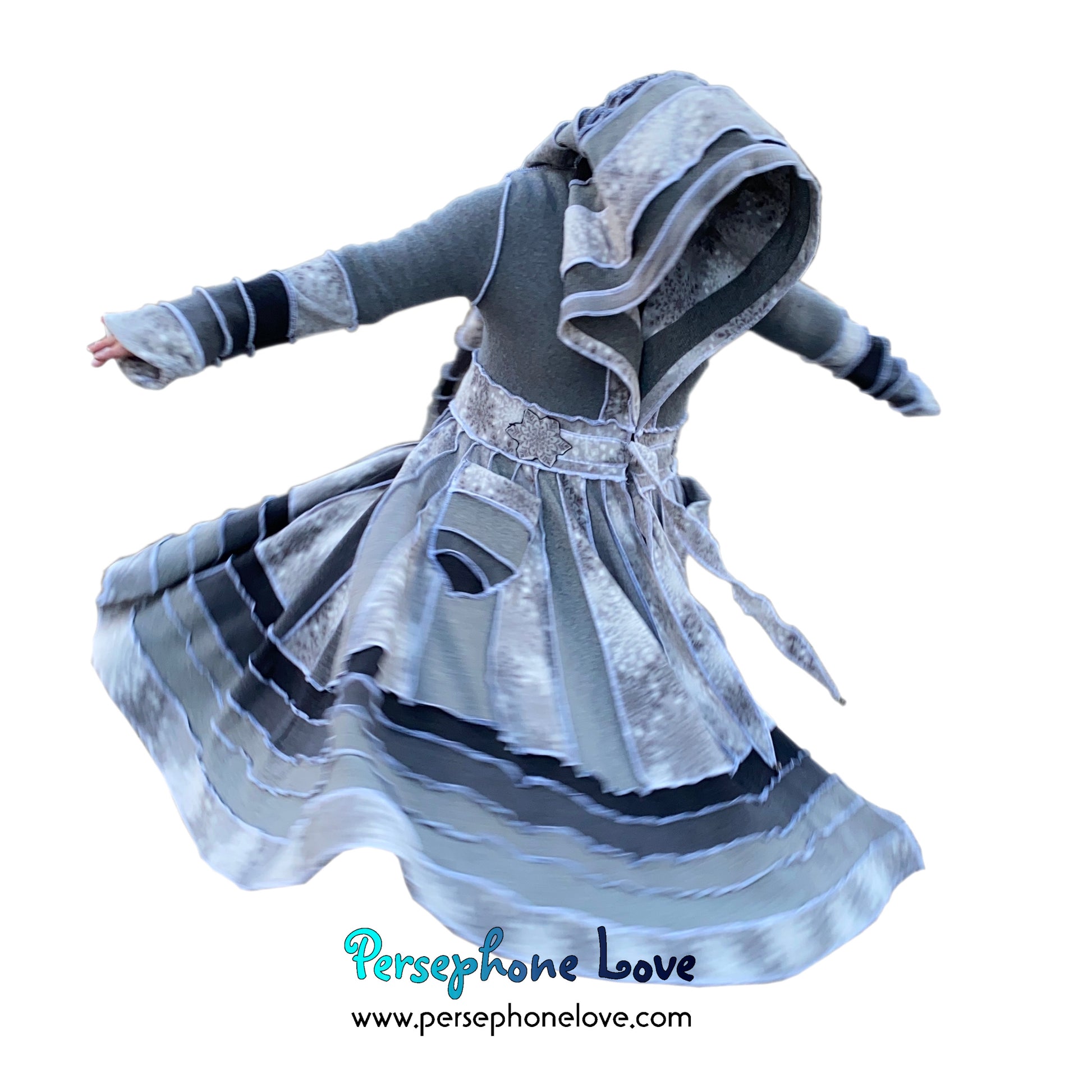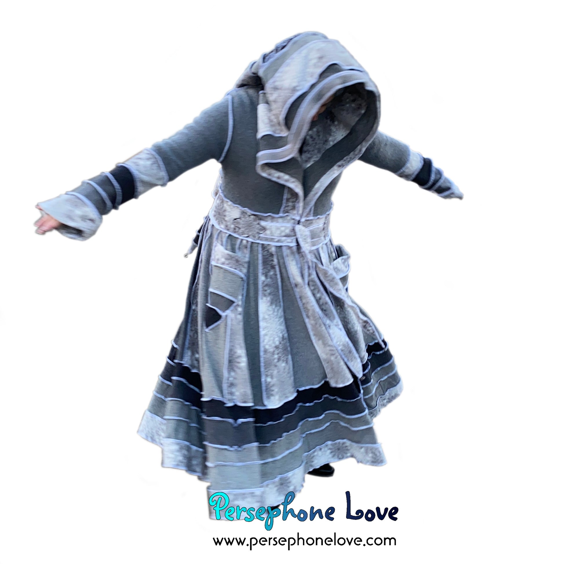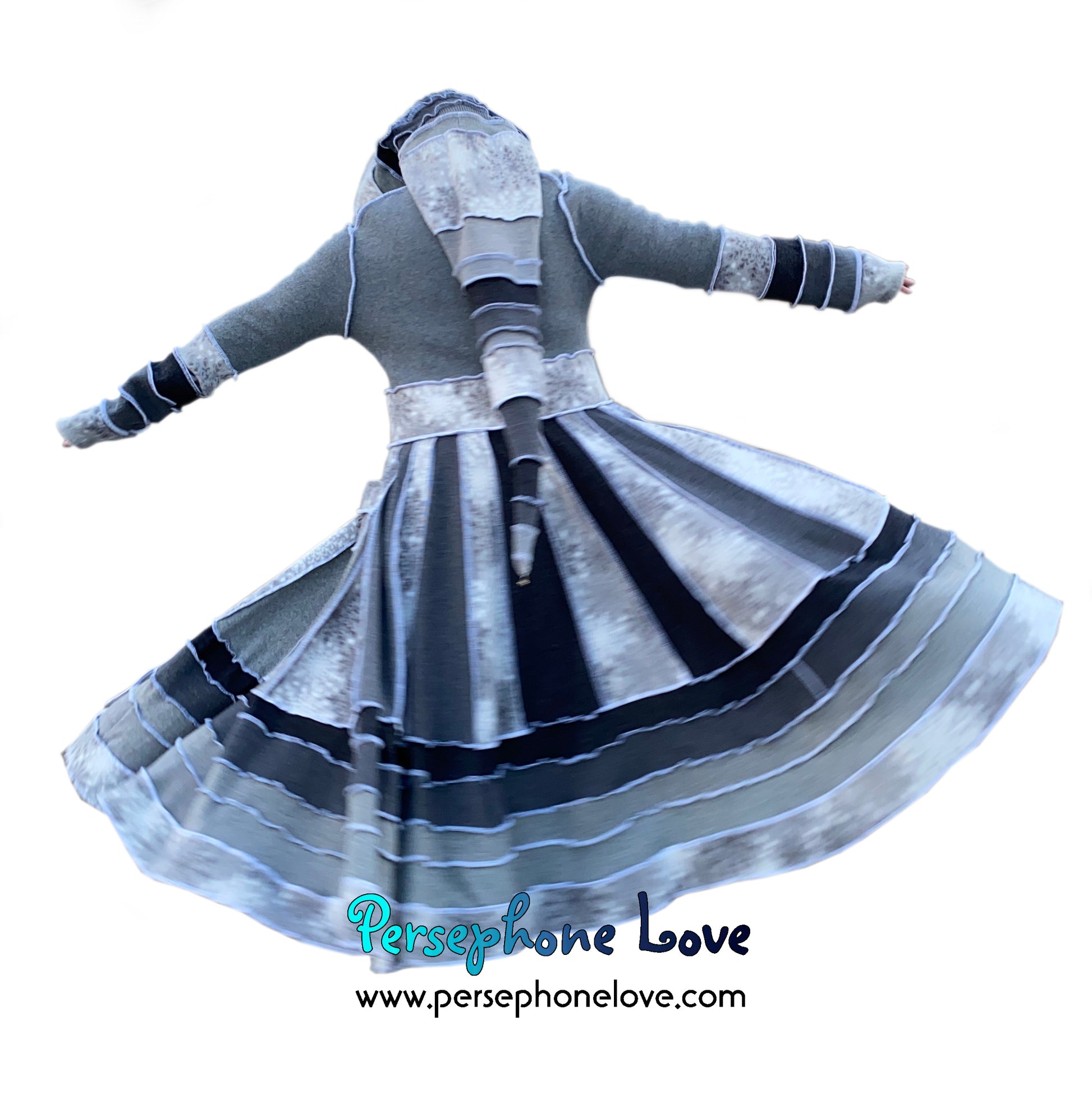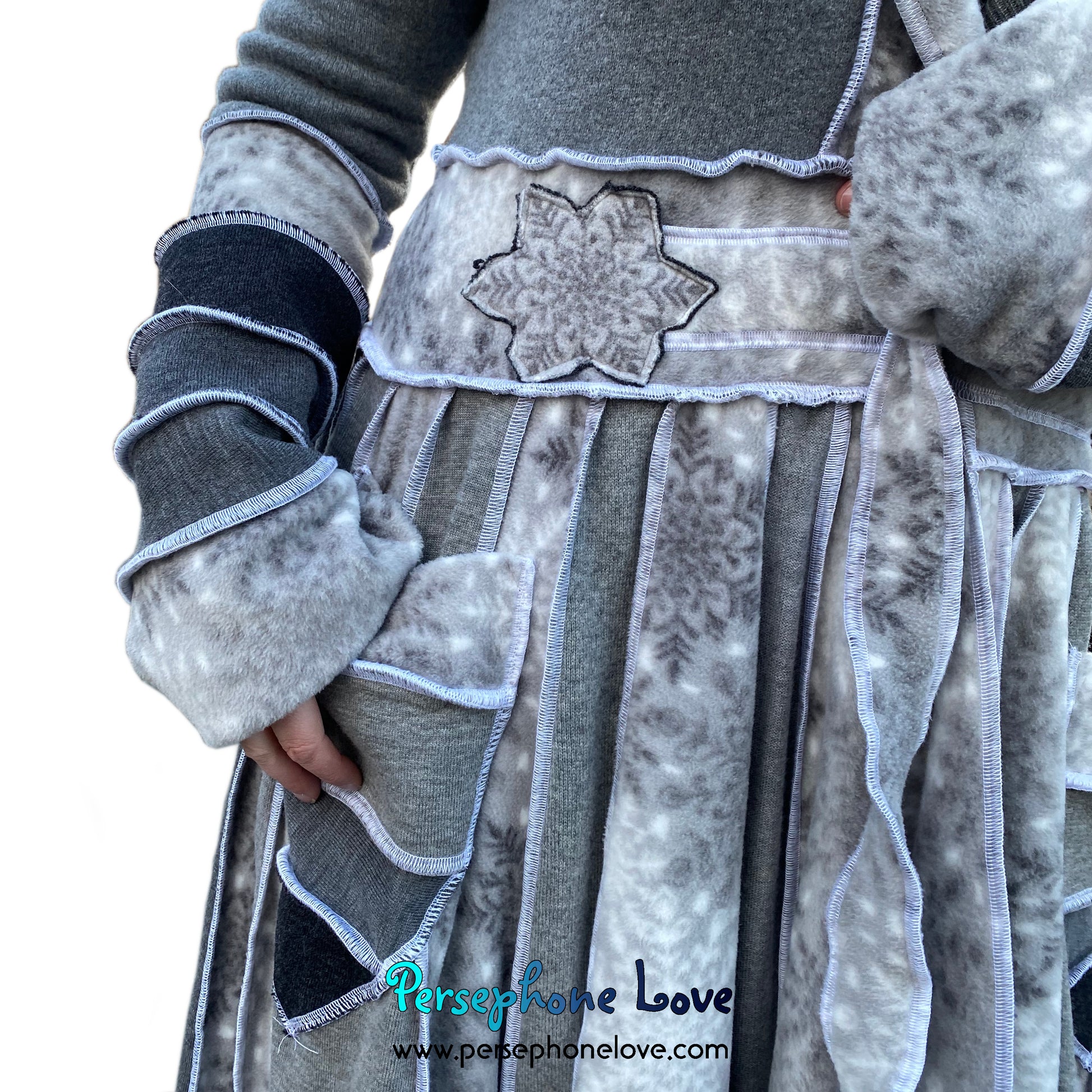 "Winter Wonderland" Grey snowflake needle-felted wool/cashmere Katwise-inspired patchwork sweatercoat-2509