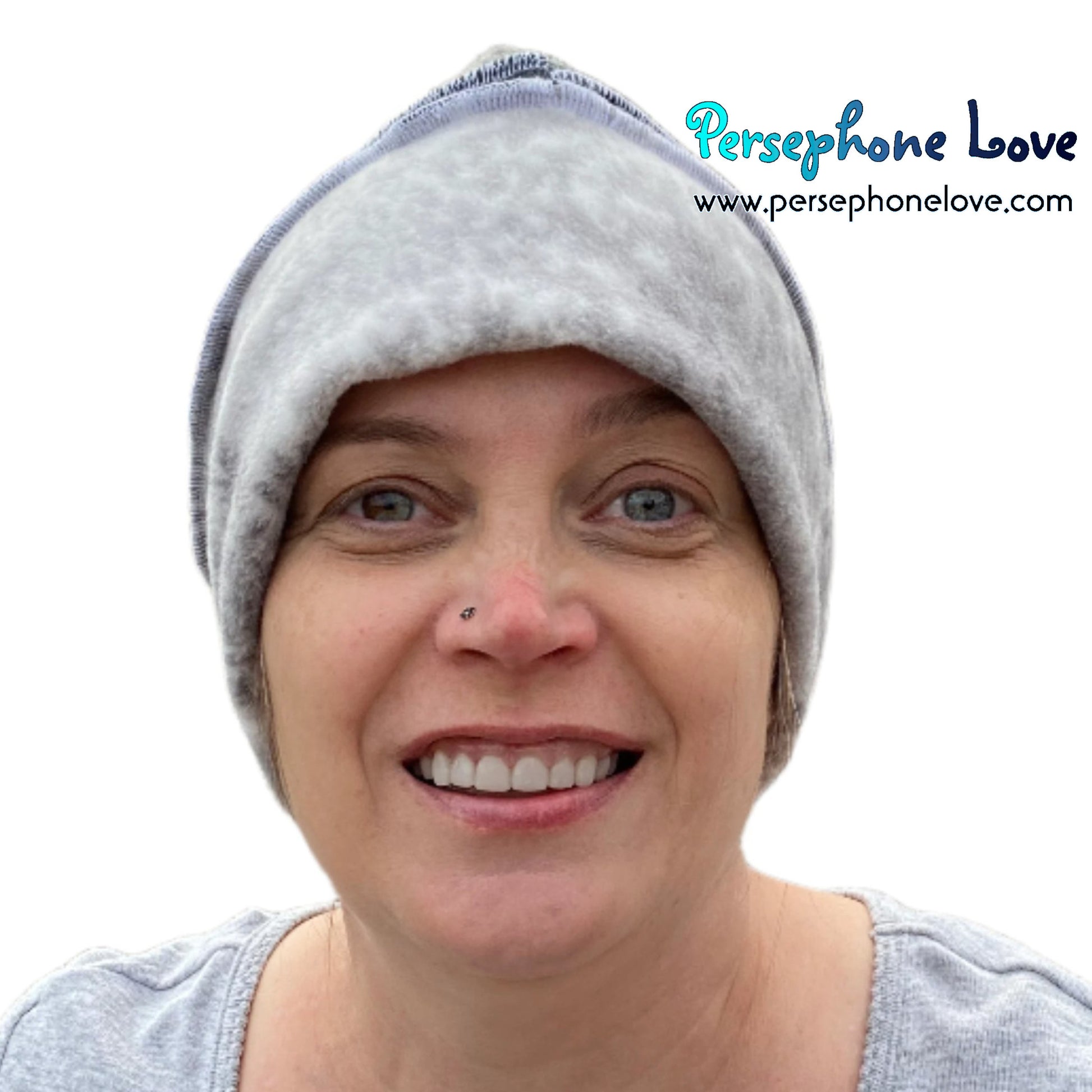 Part of my handmade felted 100% cashmere/fleece hat line. The machine needle-felting process makes this much softer and warmer than anything non-felted (and takes a LOT longer to make, which accounts for the cost). Stretchy material fits most but do take a look at the rough measurements below.