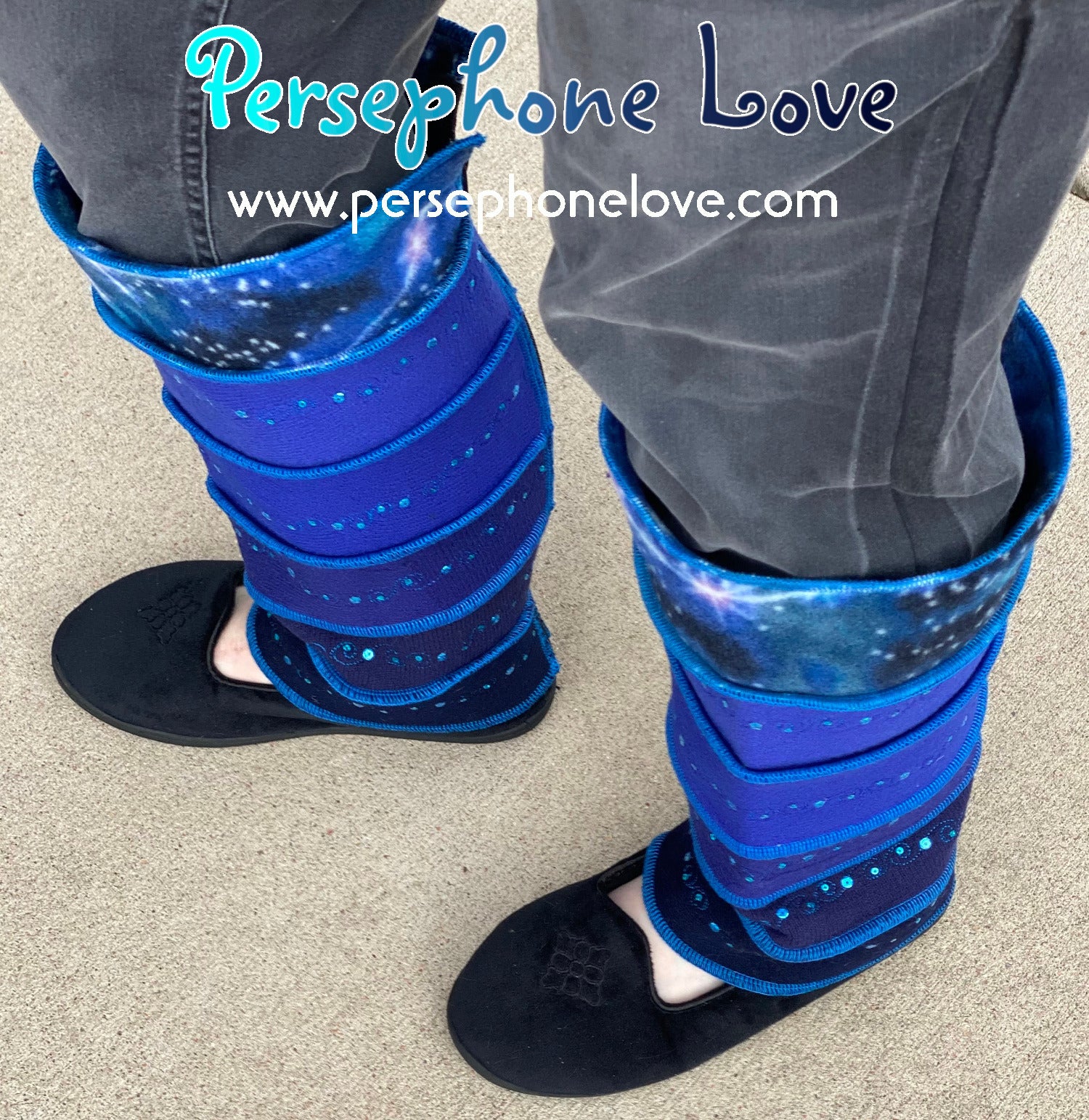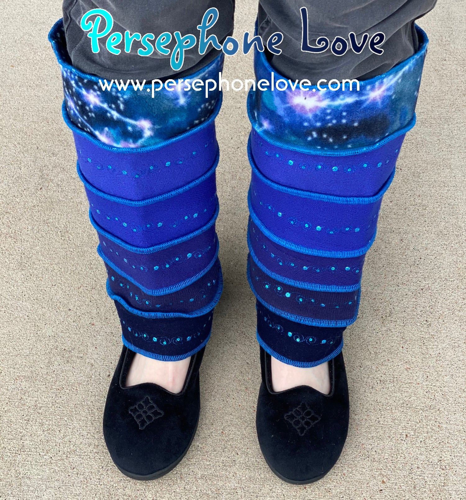 Katwise-inspired blue gradient fleece/wool embroidered sequins leg warmers-1459