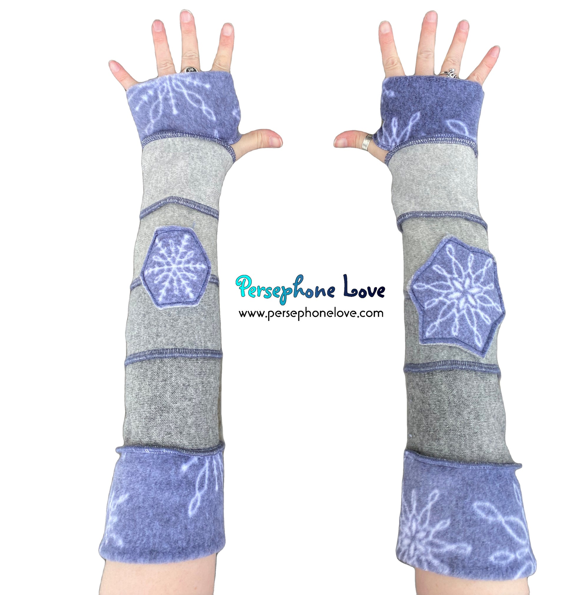 Needle-felted upcycled 100% cashmere arm warmers with thumb holes. The machine-needle-felting process makes these twice as thick and super warm. It also takes a lot longer to make these than other Katwise-style arm-warmers you may have seen, which is why they cost what they do (that plus cashmere is just a more expensive material and double-thickness is double-materials-cost). One size fits most and they are thick enough not to "droop" on you but still buttery soft and luxuriously comfortable. Sized generally for smaller adult bone structure but not intending to exclude anyone. I just want them to fit. They are impossible to perfectly measure, but I've done my best to give you some rough measurements to help out. đ