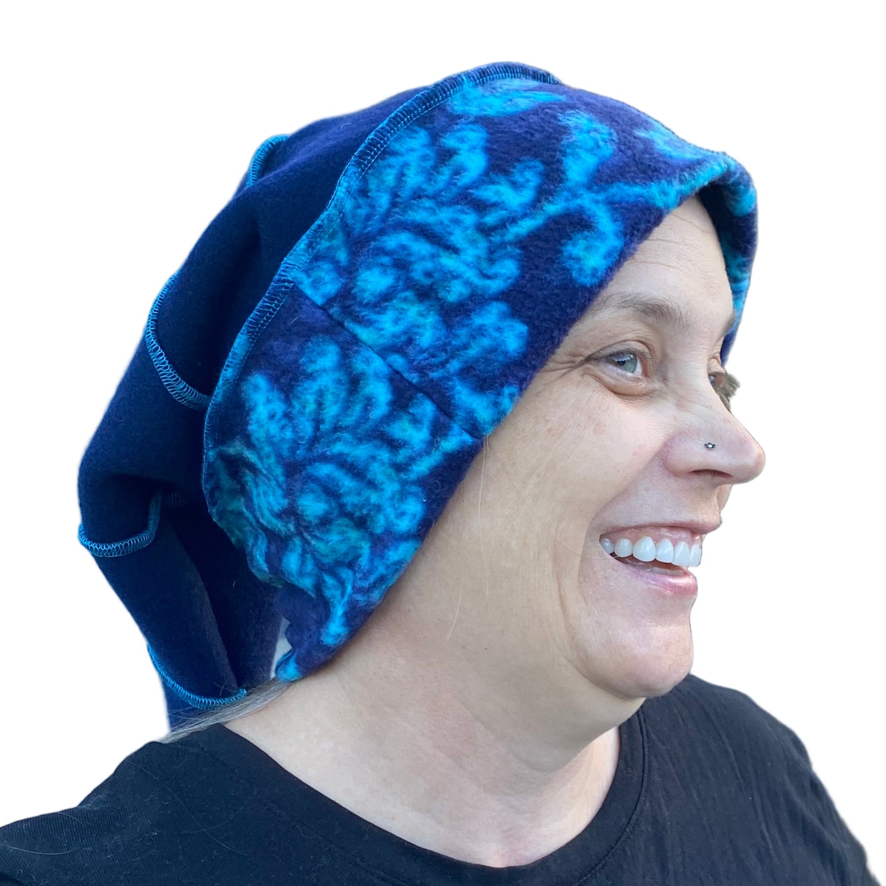 Part of my handmade felted 100% cashmere/fleece hat line. The machine needle-felting process makes this much softer and warmer than anything non-felted (and takes a LOT longer to make, which accounts for the cost). Stretchy material fits most but do take a look at the rough measurements below. Rough brim circumference: ~24 inches - LARGE