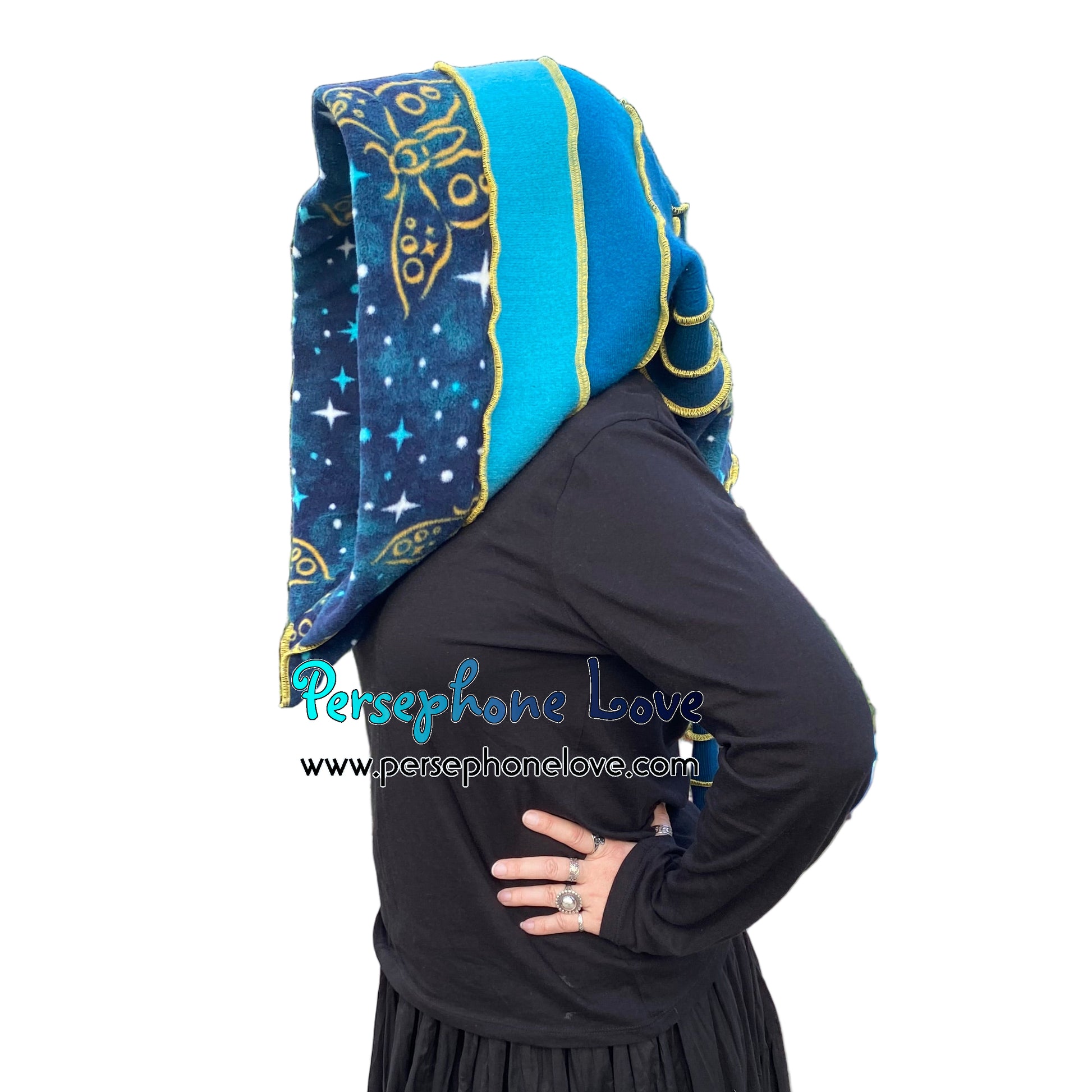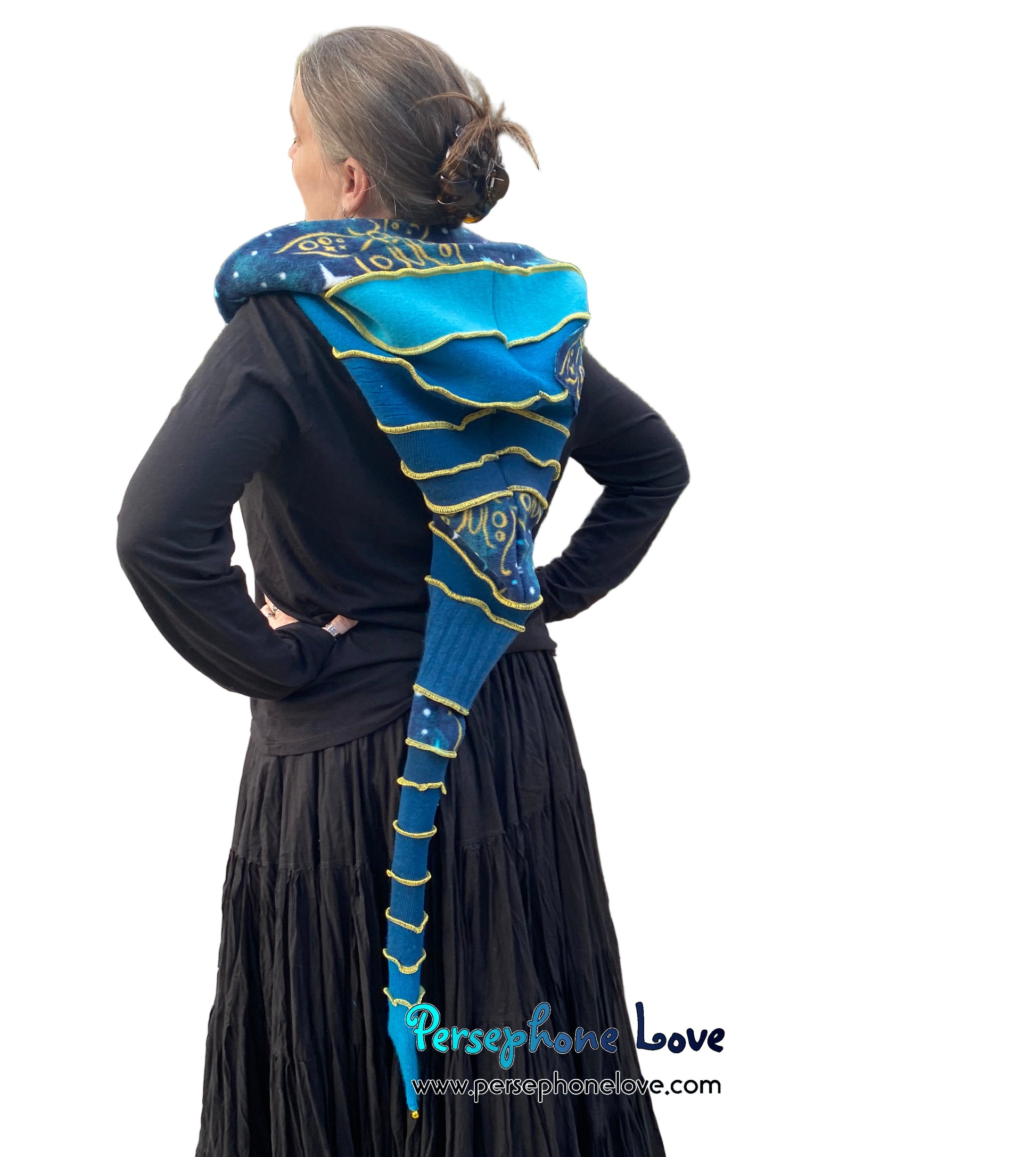 Katwise inspired felted 100% cashmere recycled sweater elf hat/hood-1826