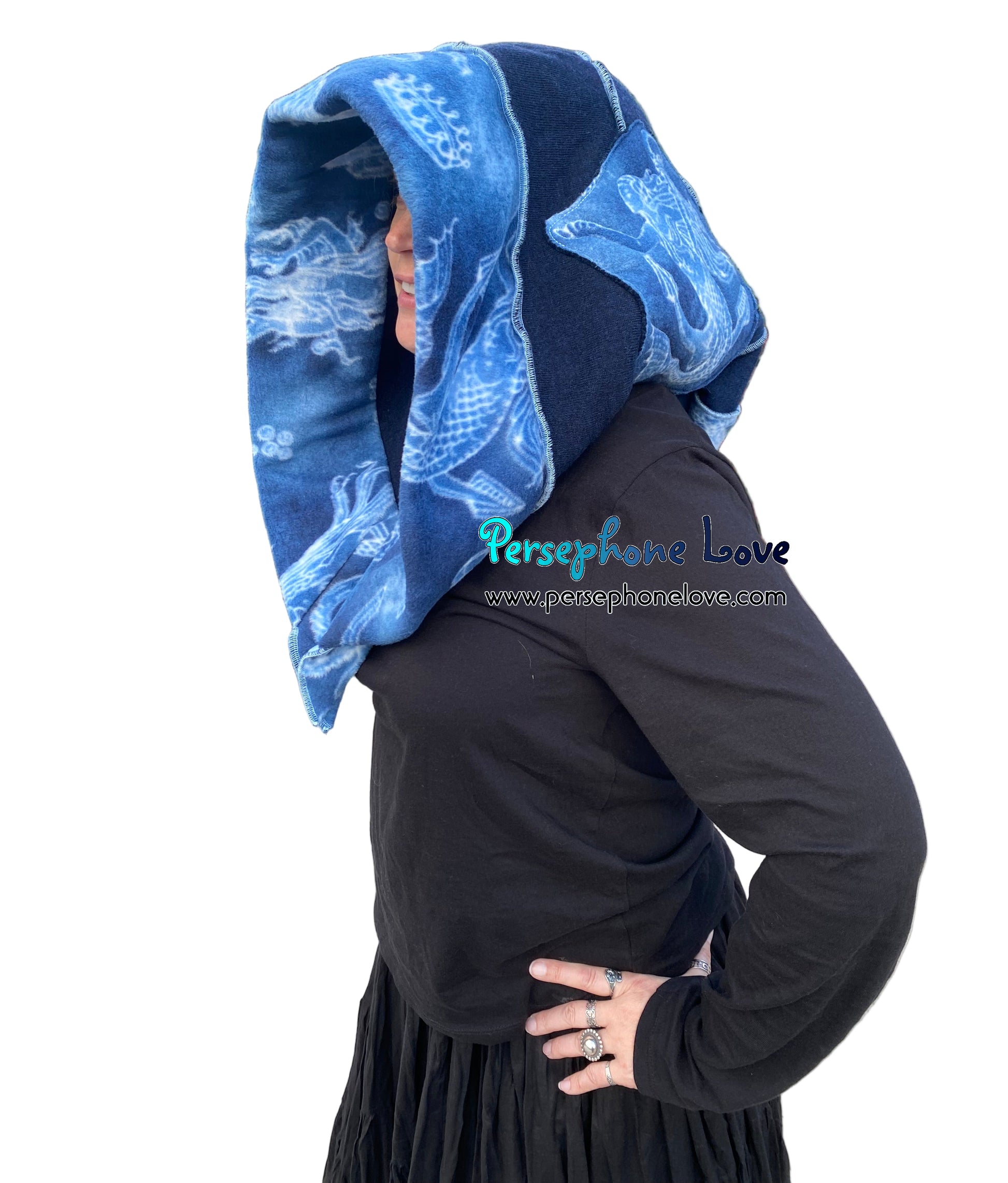 Katwise inspired felted 100% merino wool recycled sweater elf hat/hood-1868