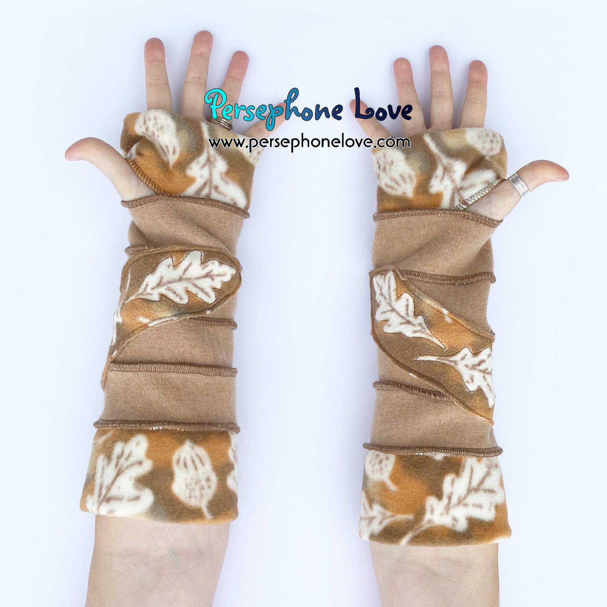 Needle-felted upcycled 100% cashmere arm warmers with thumb holes. The machine-needle-felting process makes these twice as thick and super warm. It also takes a lot longer to make these than other Katwise-style arm-warmers you may have seen, which is why they cost what they do (that plus cashmere is just a more expensive material and double-thickness is double-materials-cost). One size fits most and they are thick enough not to "droop" on you but still buttery soft and luxuriously comfortable. Sized generally for smaller adult bone structure but not intending to exclude anyone. I just want them to fit. They are impossible to perfectly measure, but I've done my best to give you some rough measurements to help out. đÂ