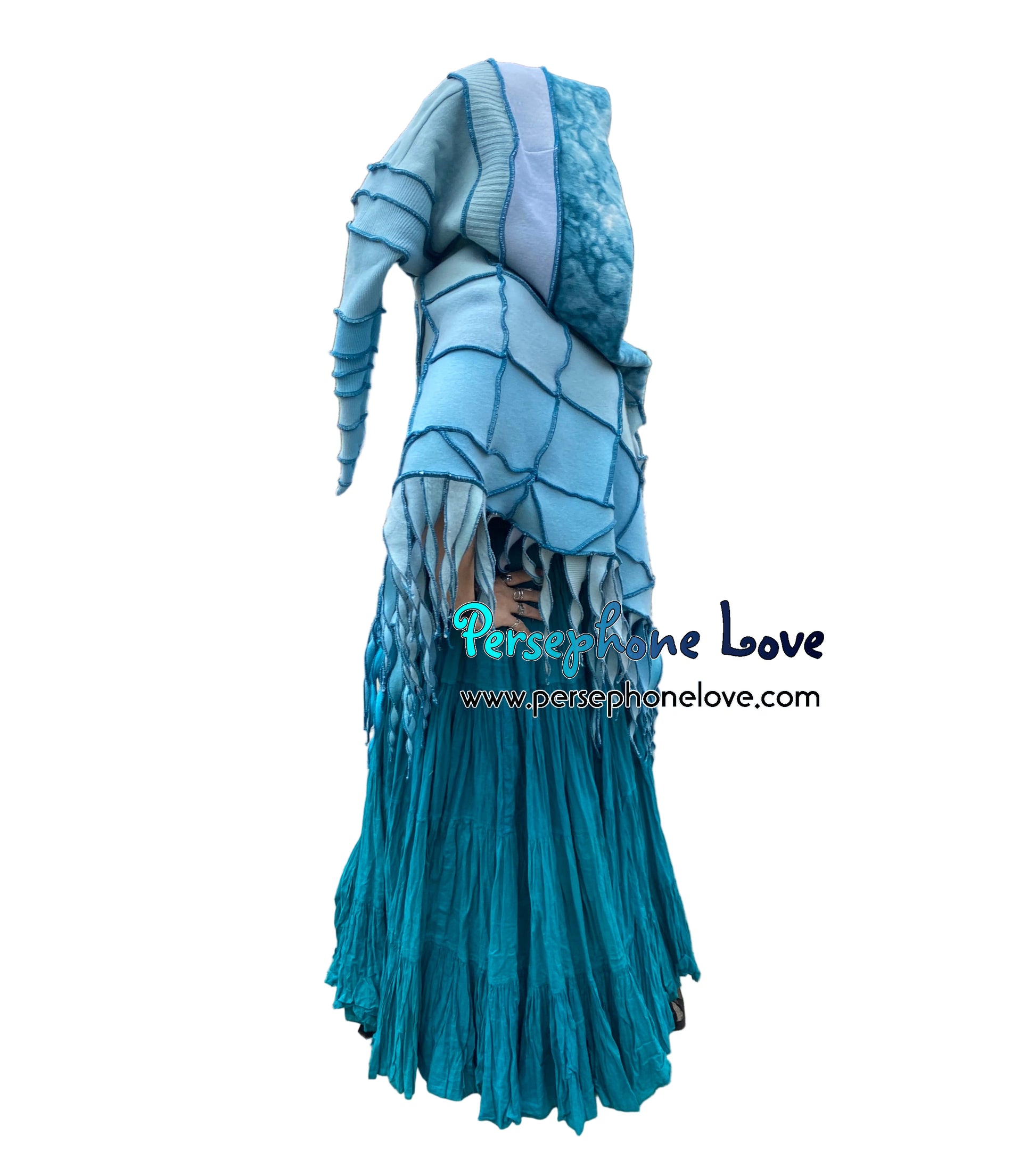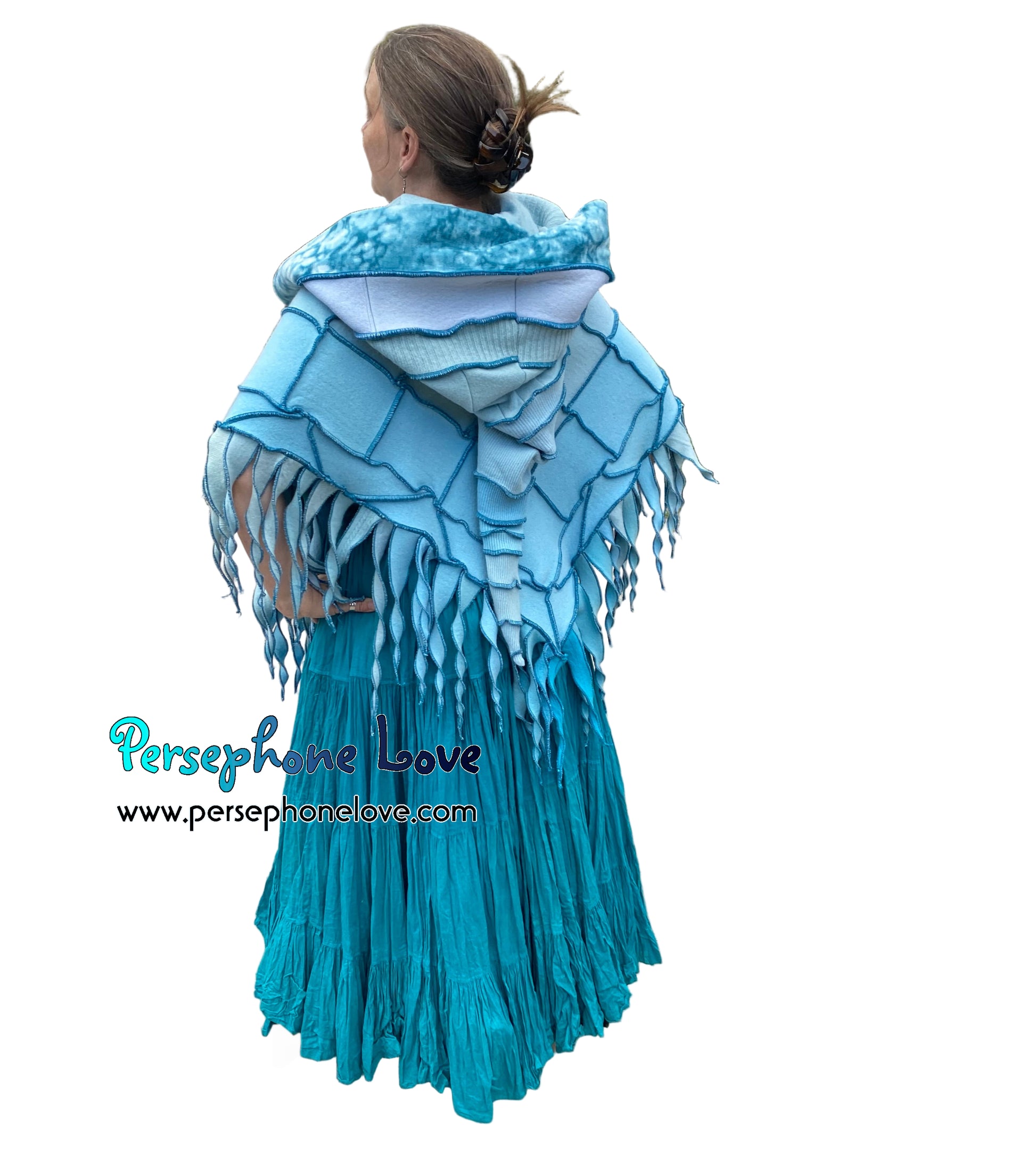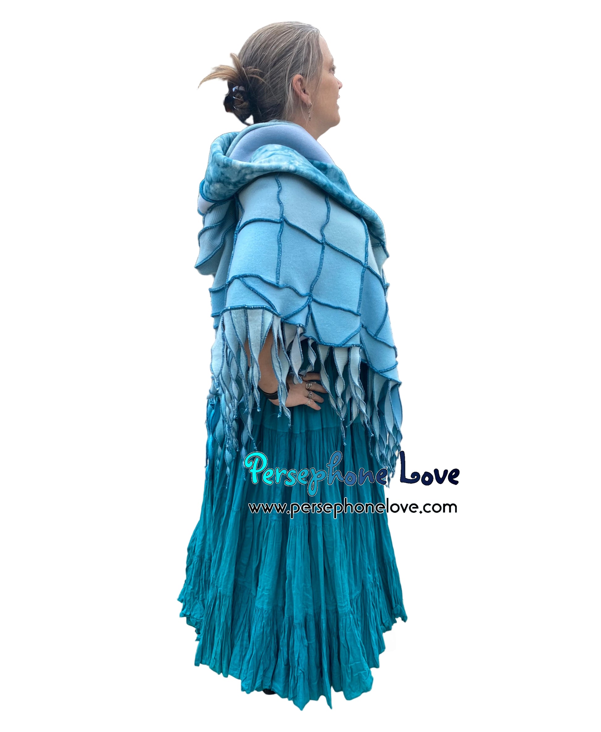 "You Belong" Light teal patchwork felted cashmere/fleece hooded poncho-2587