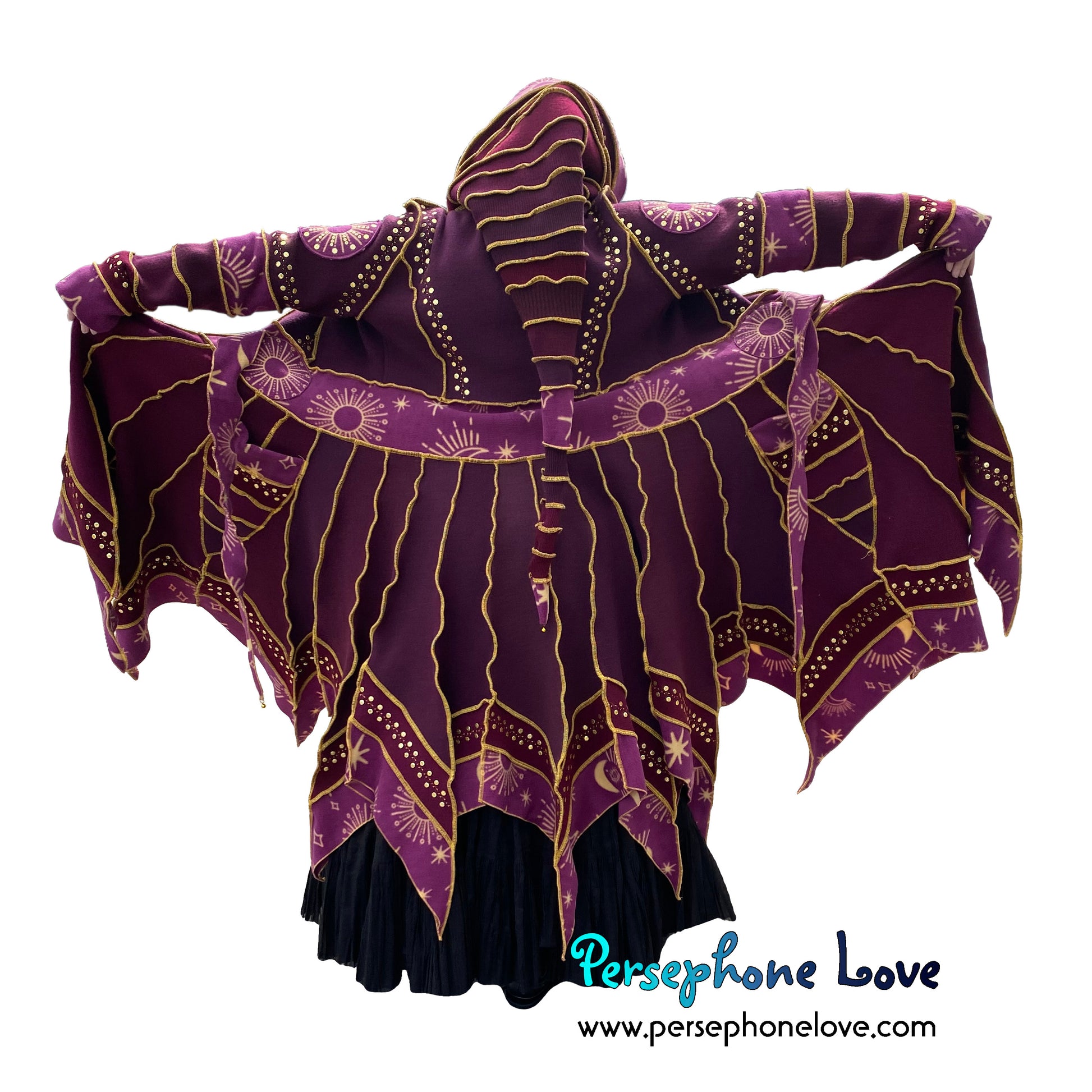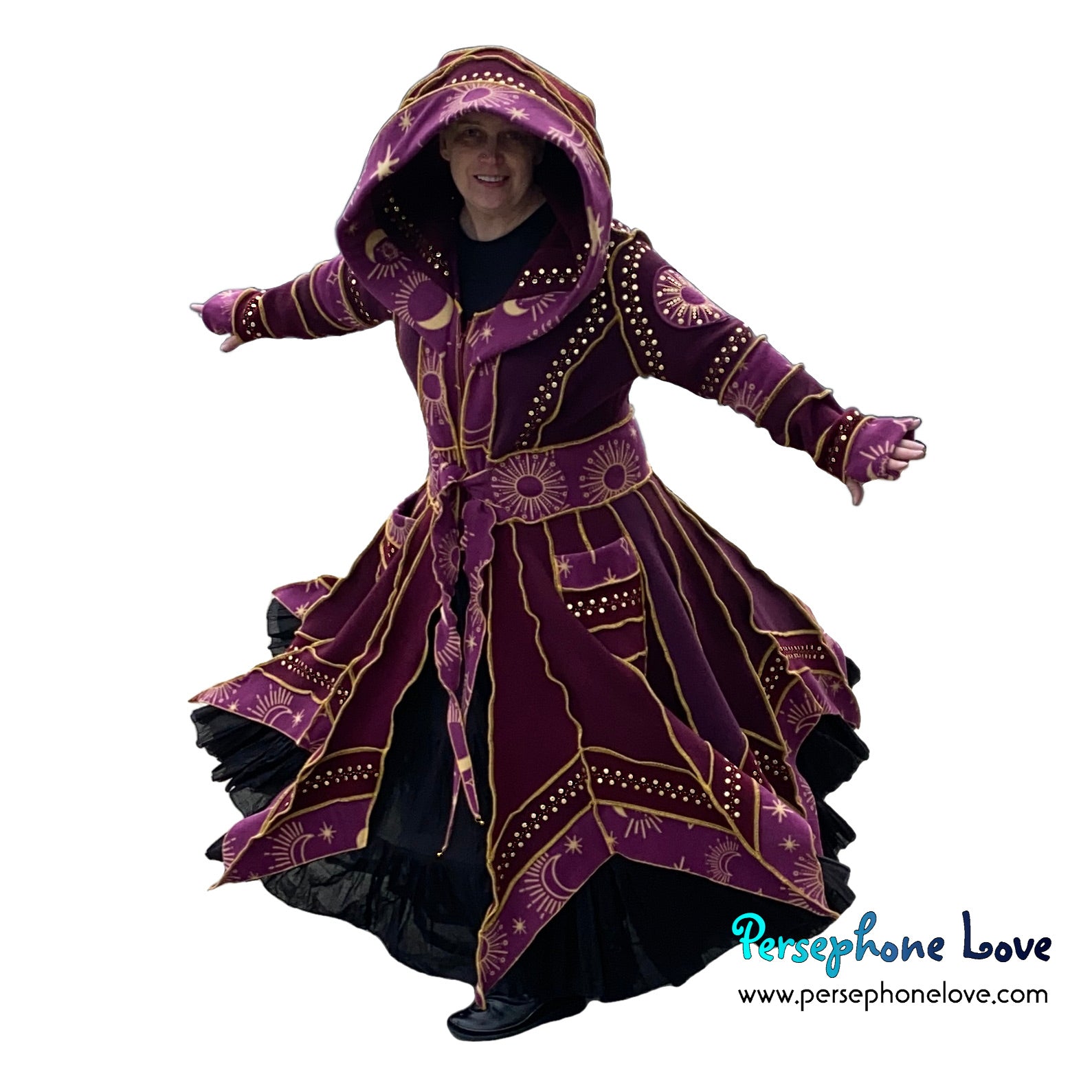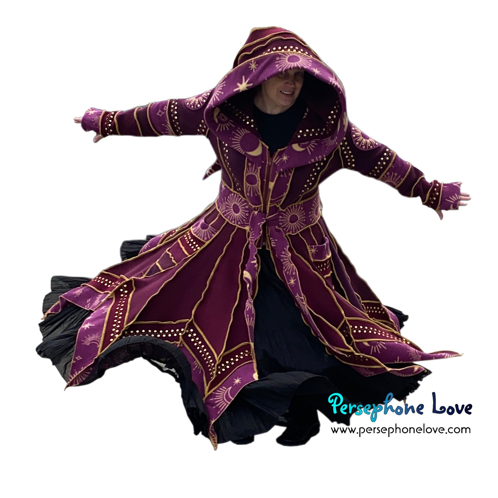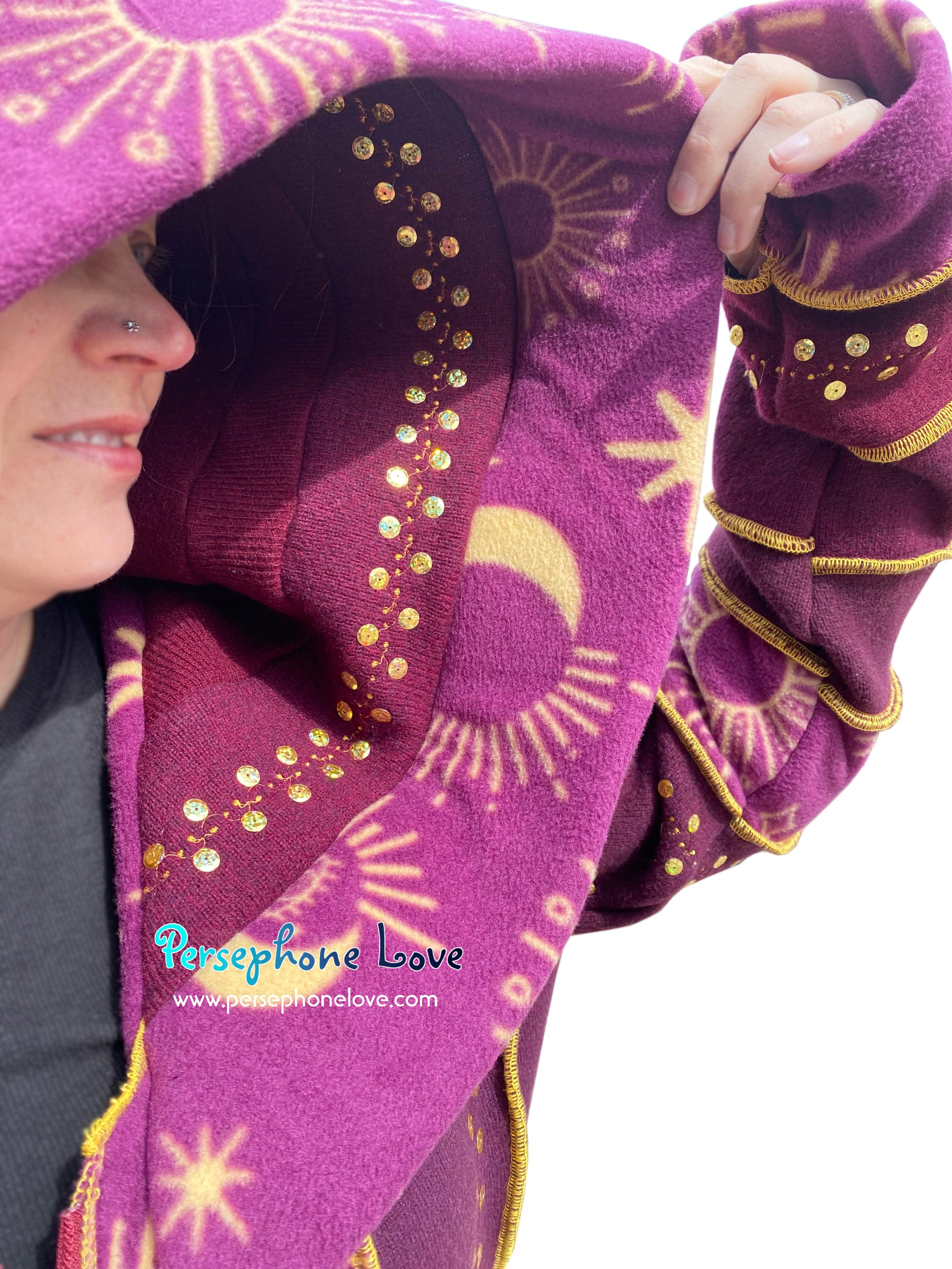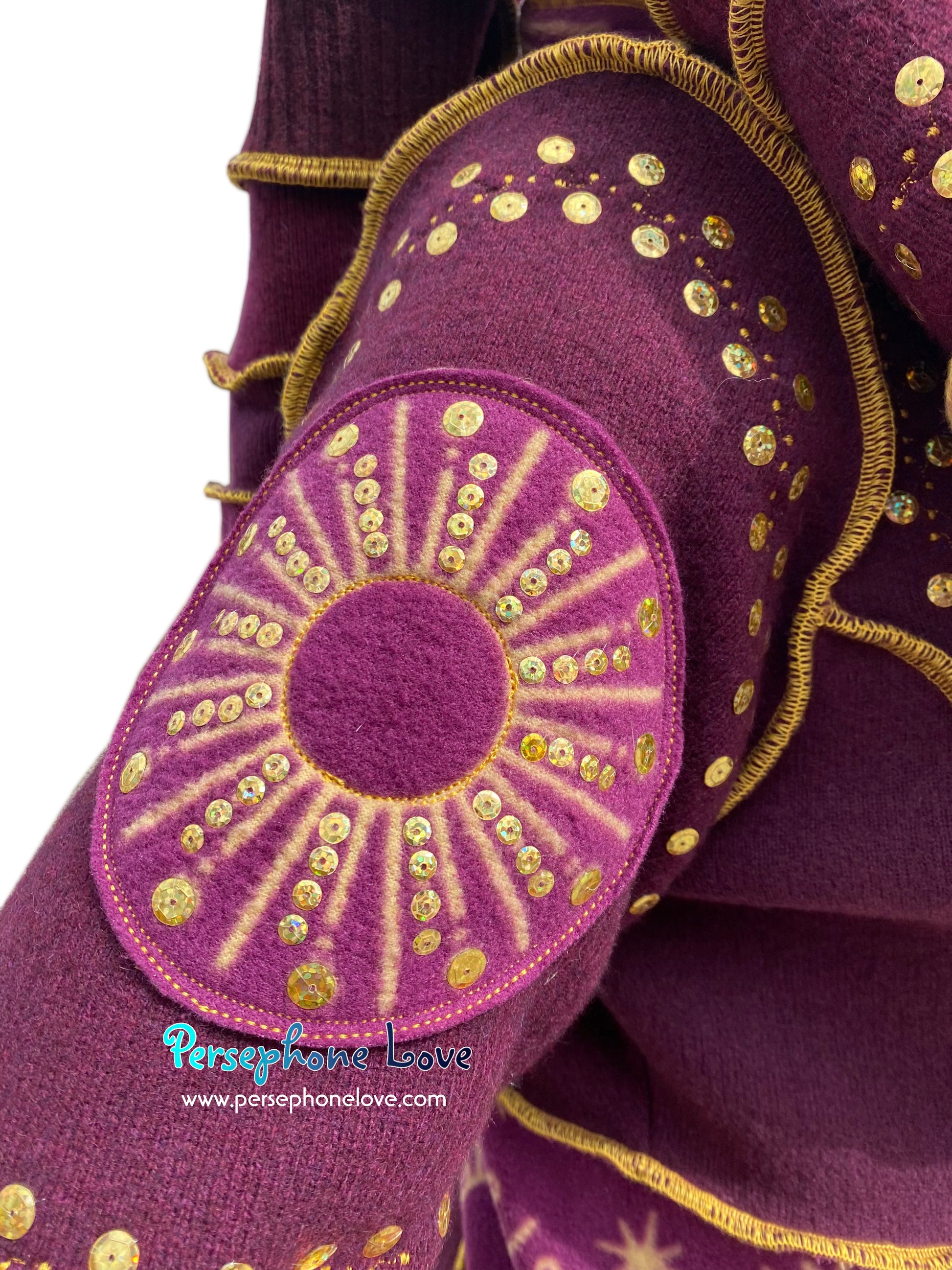 "Sitting on the Moon" magenta celestial pixie felted 100% cashmere/fleece Katwise-inspired sequin sweatercoat-2581