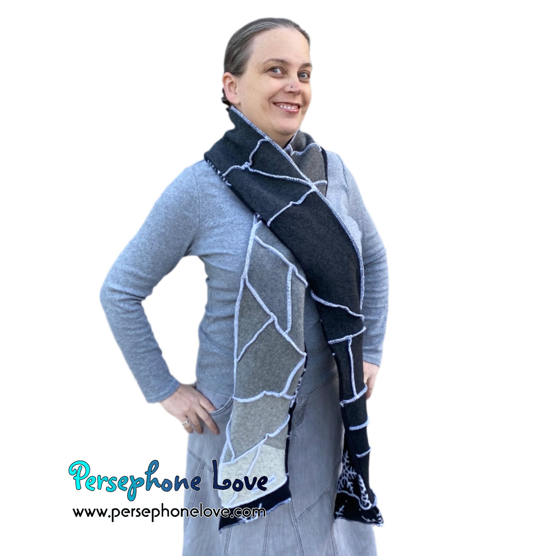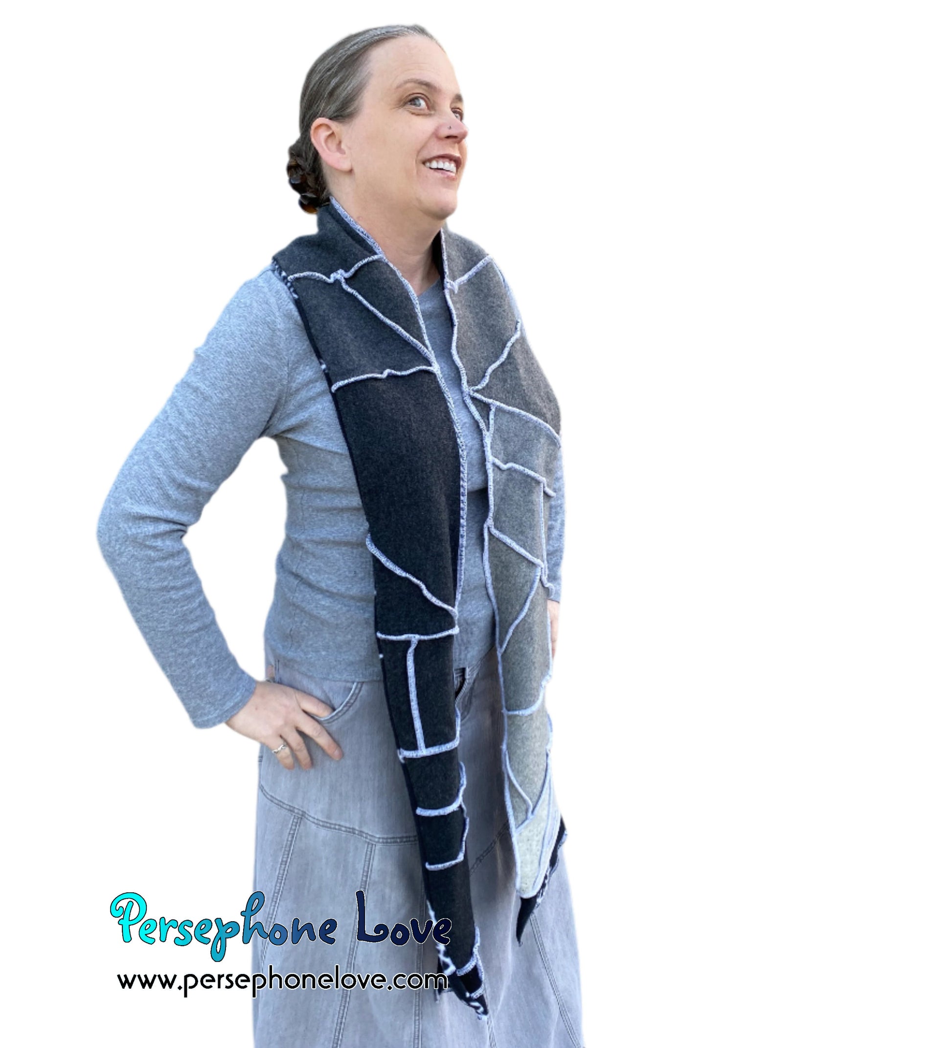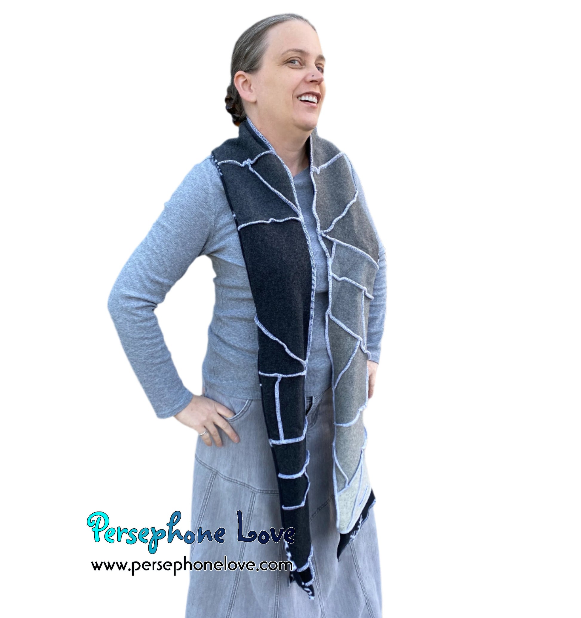 Patchwork grey 100% cashmere upcycled needle-felted sweater scarf -1788