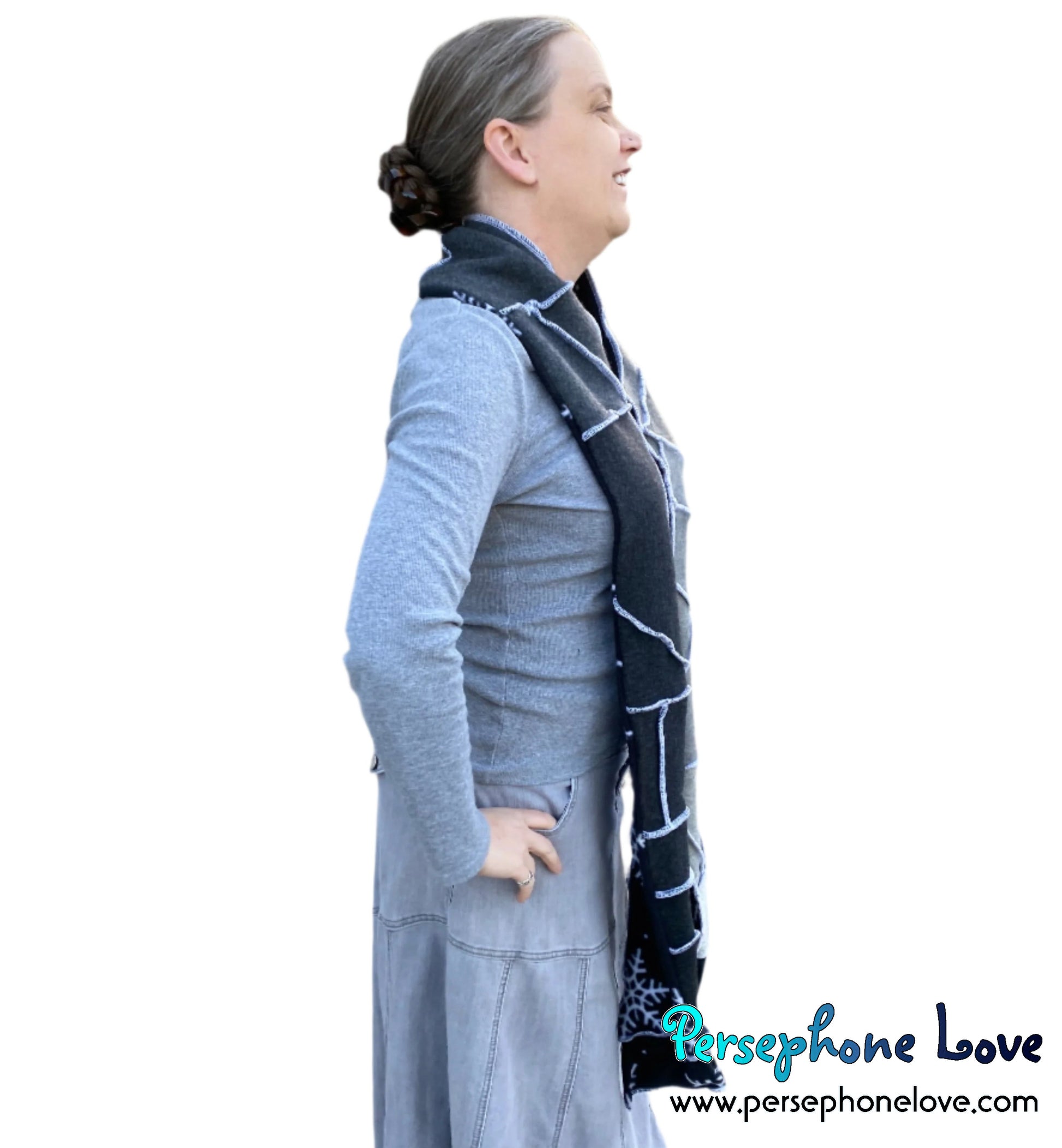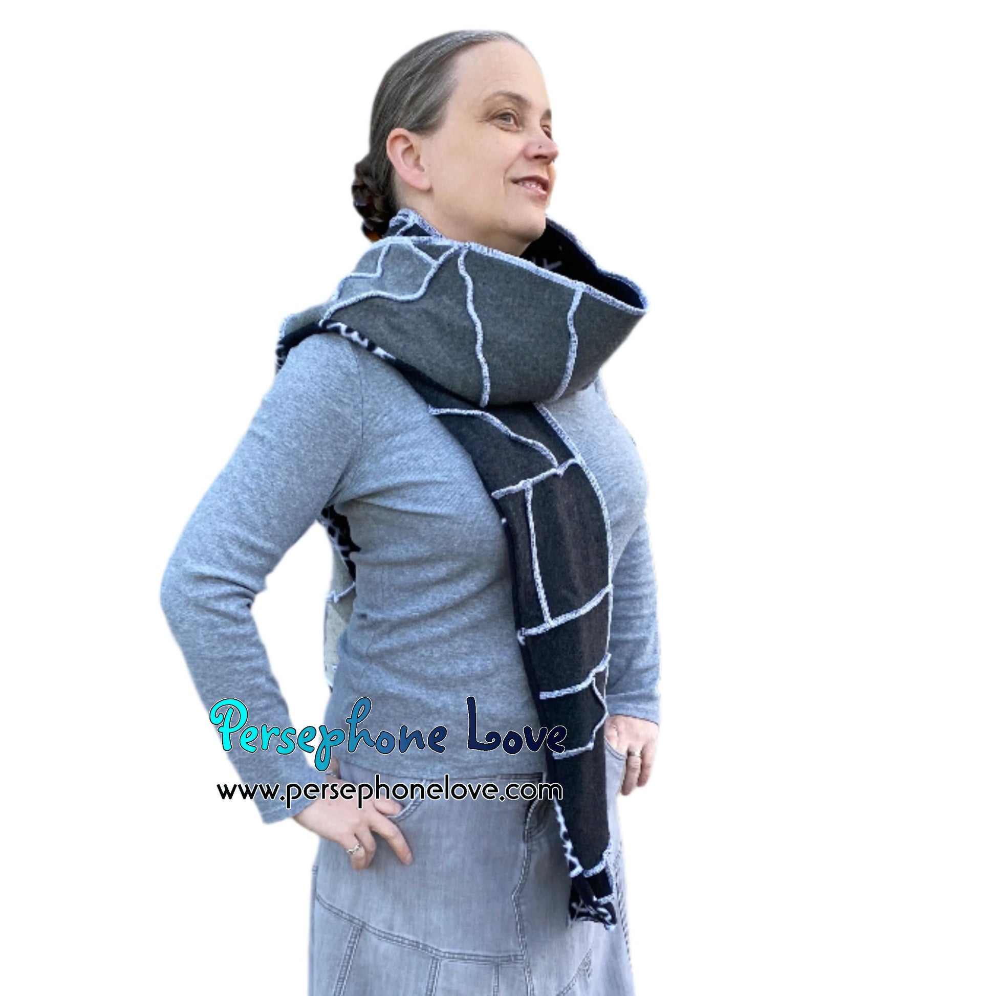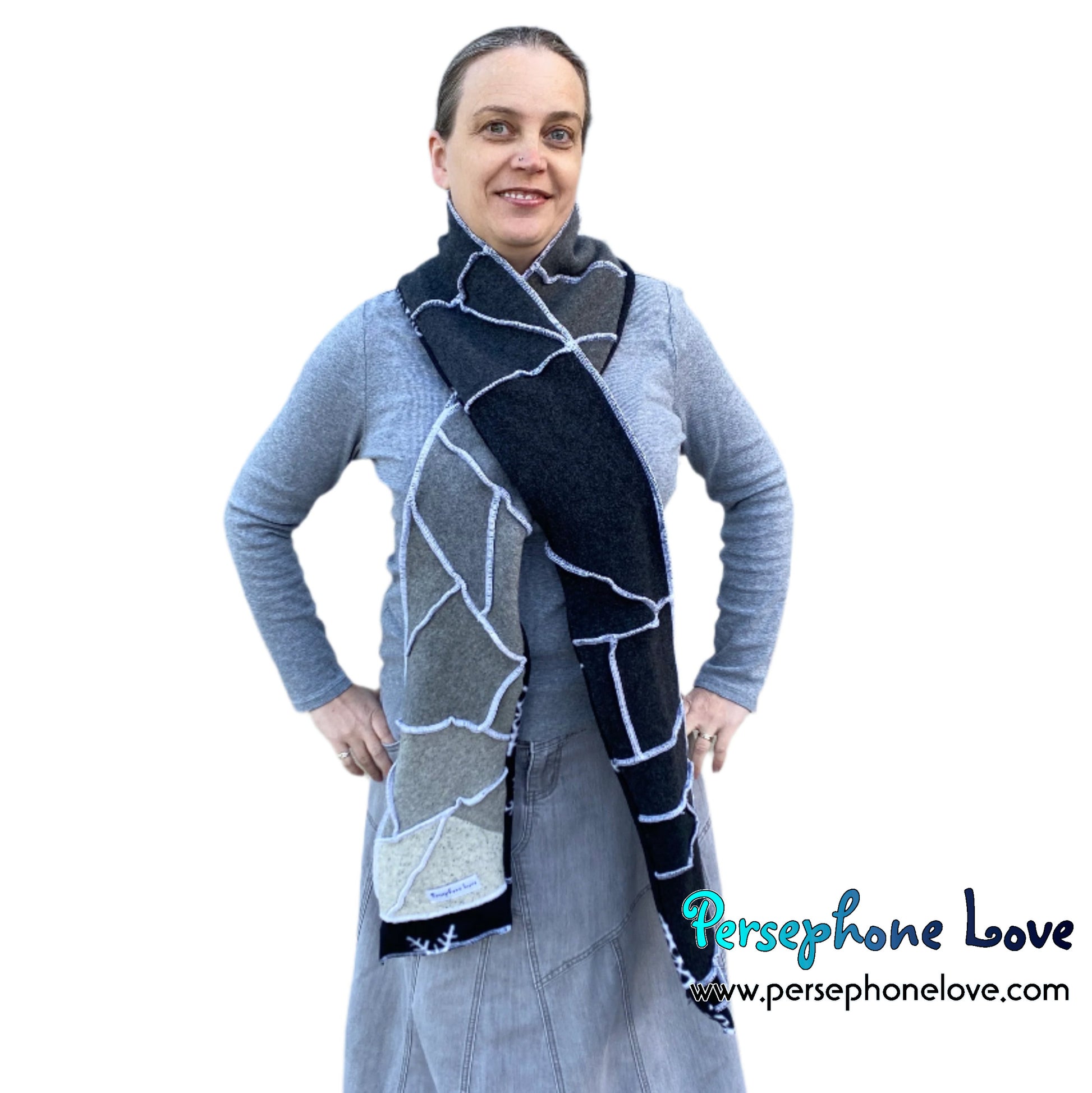 Patchwork grey 100% cashmere upcycled needle-felted sweater scarf -1788
