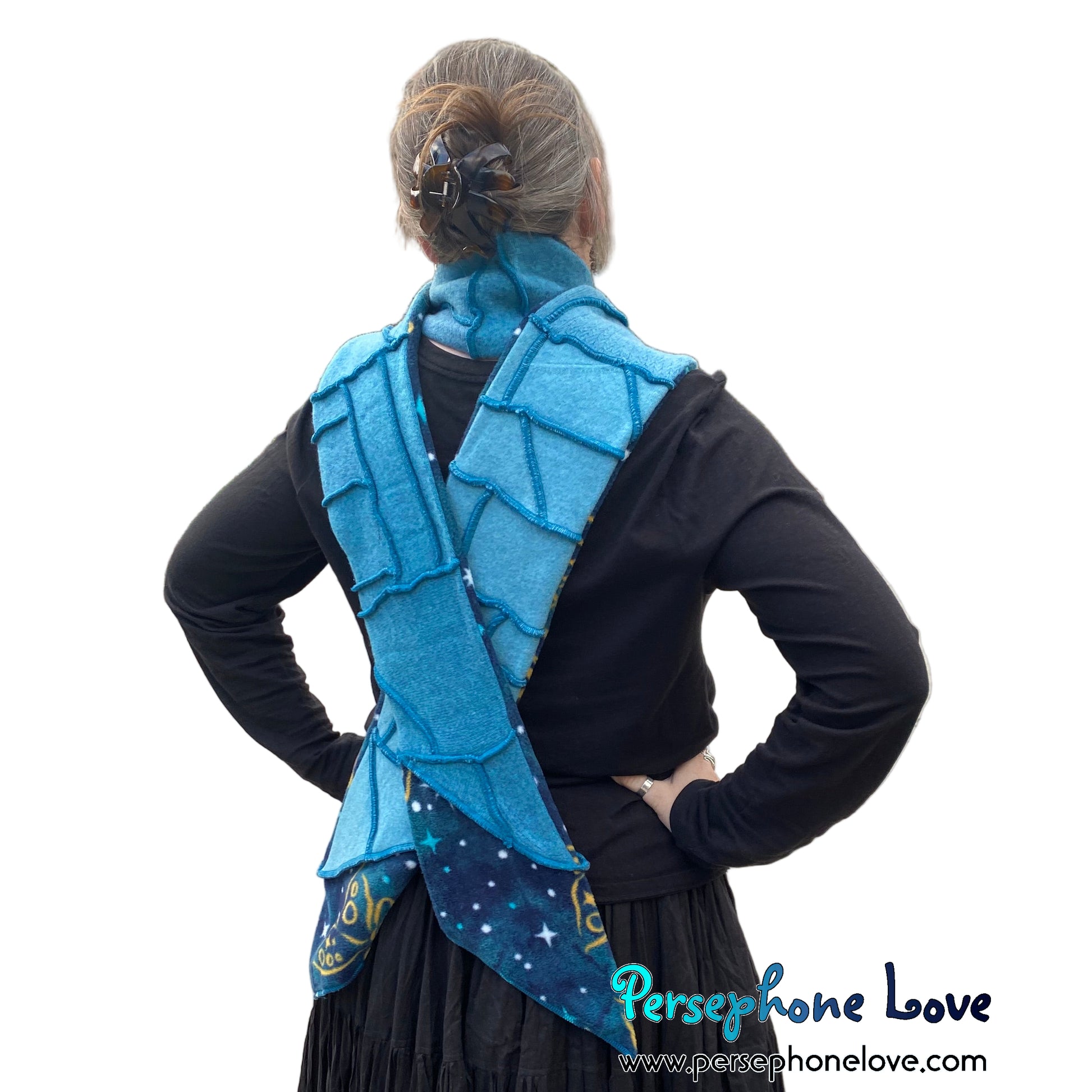Patchwork teal 100% cashmere upcycled needle-felted sweater scarf -1821