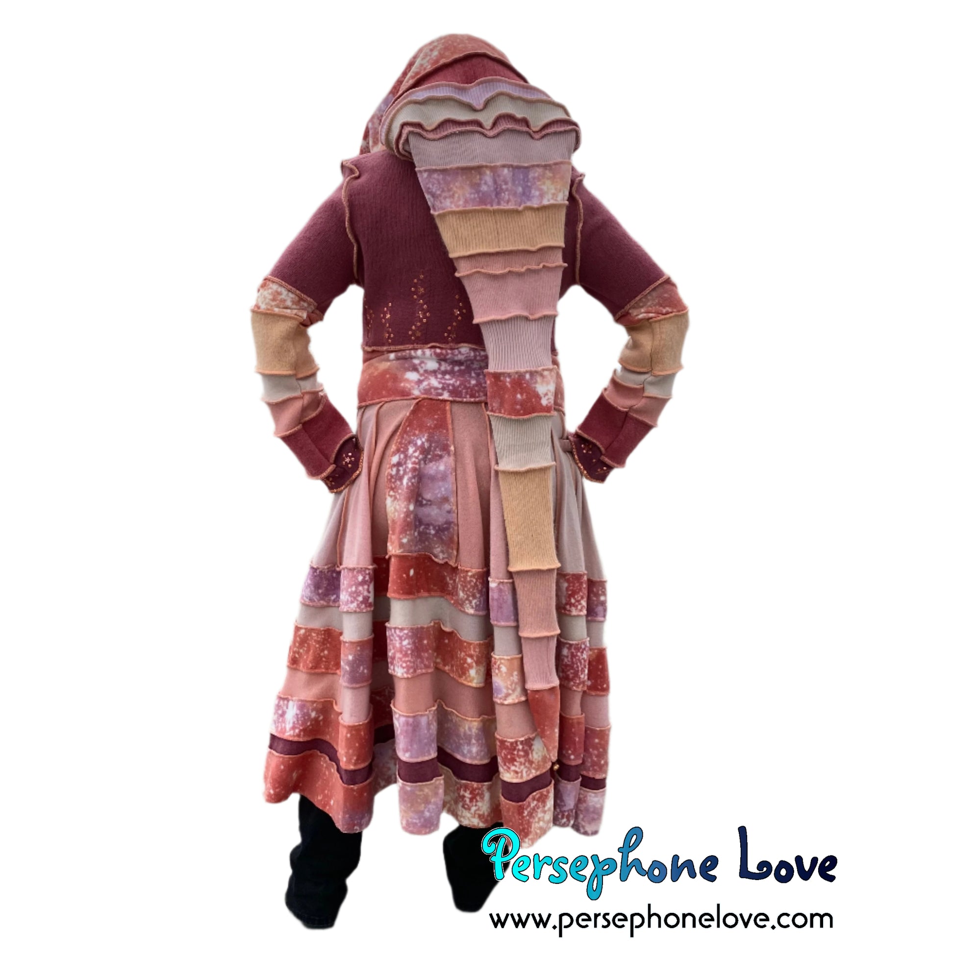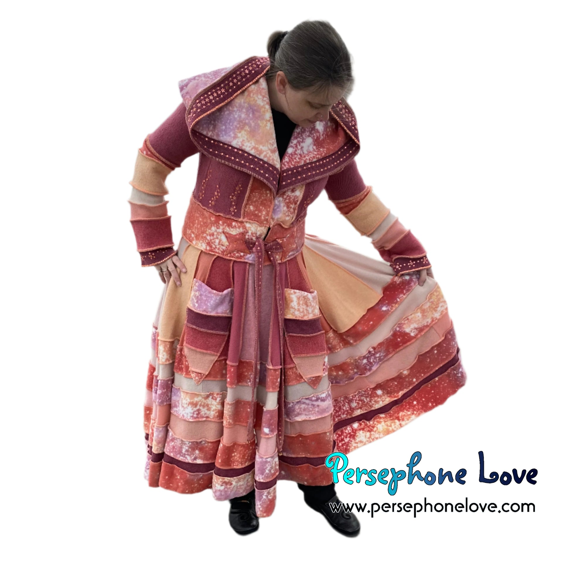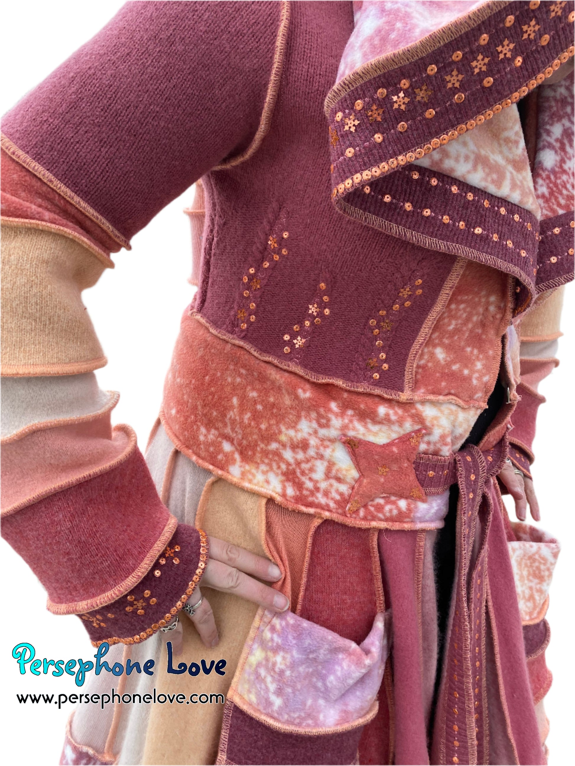 "Easter" Peach needle-felted wool/cashmere Katwise-inspired patchwork elf sweatercoat-2514