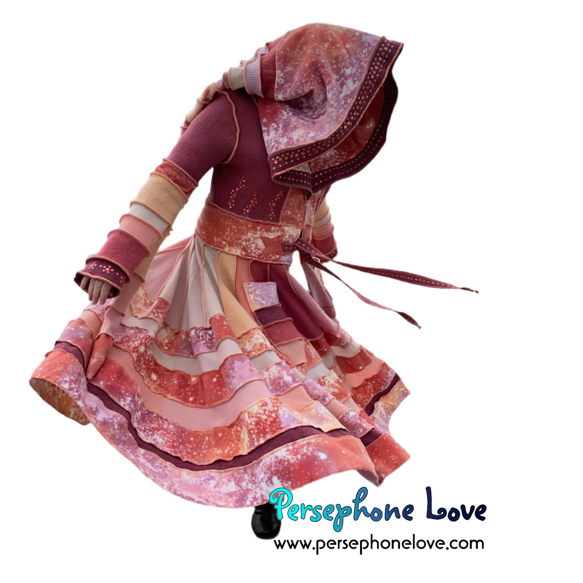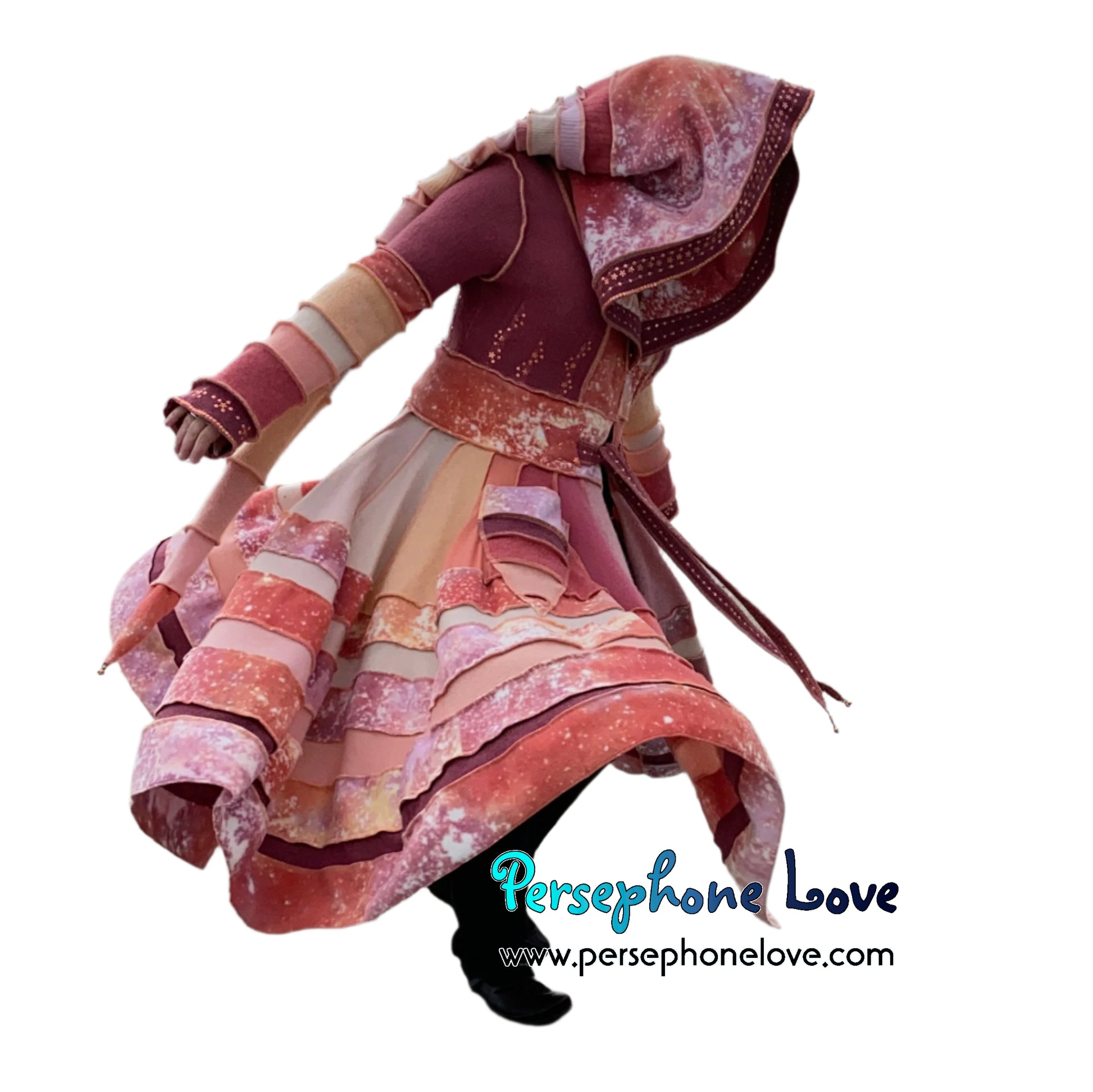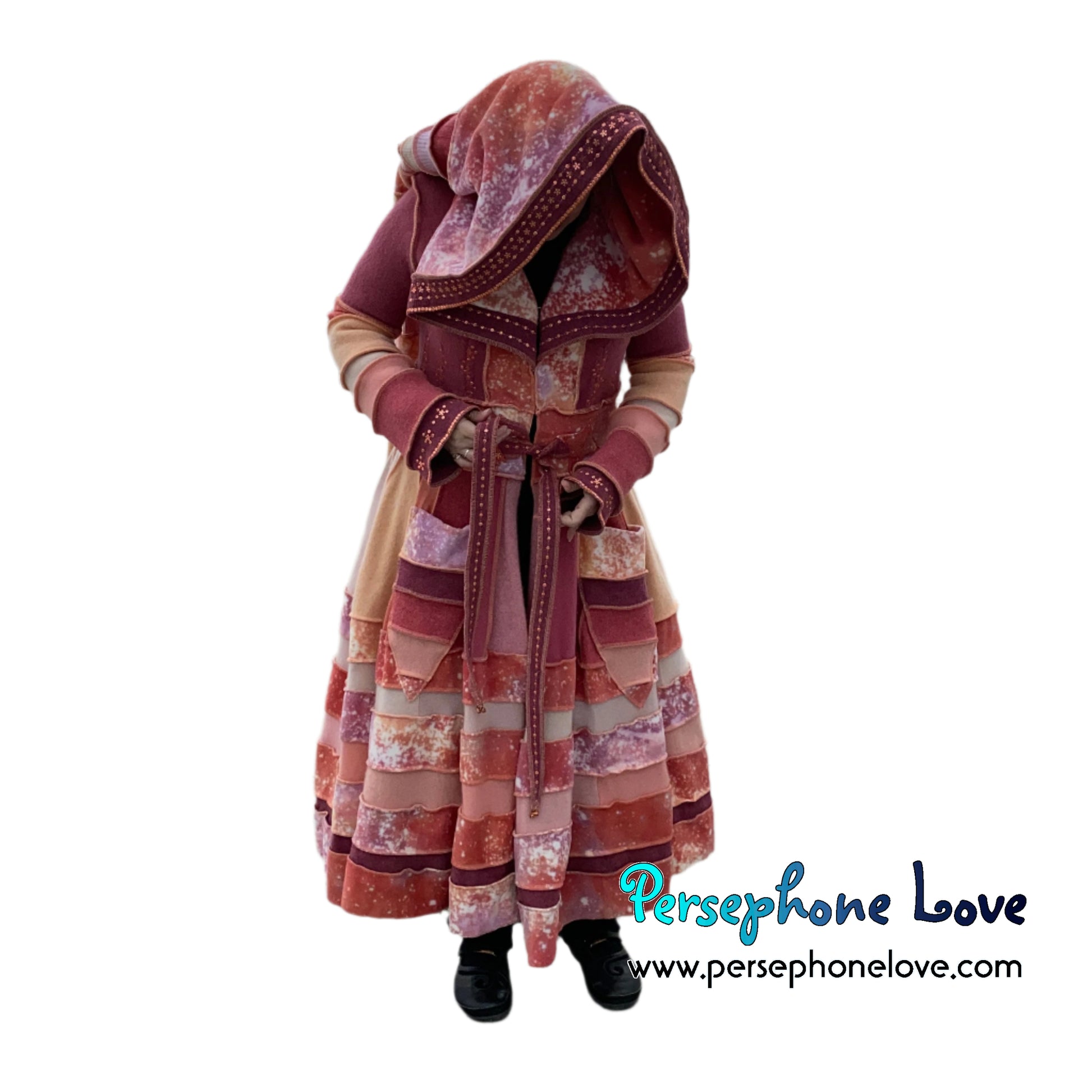 "Easter" Peach needle-felted wool/cashmere Katwise-inspired patchwork elf sweatercoat-2514
