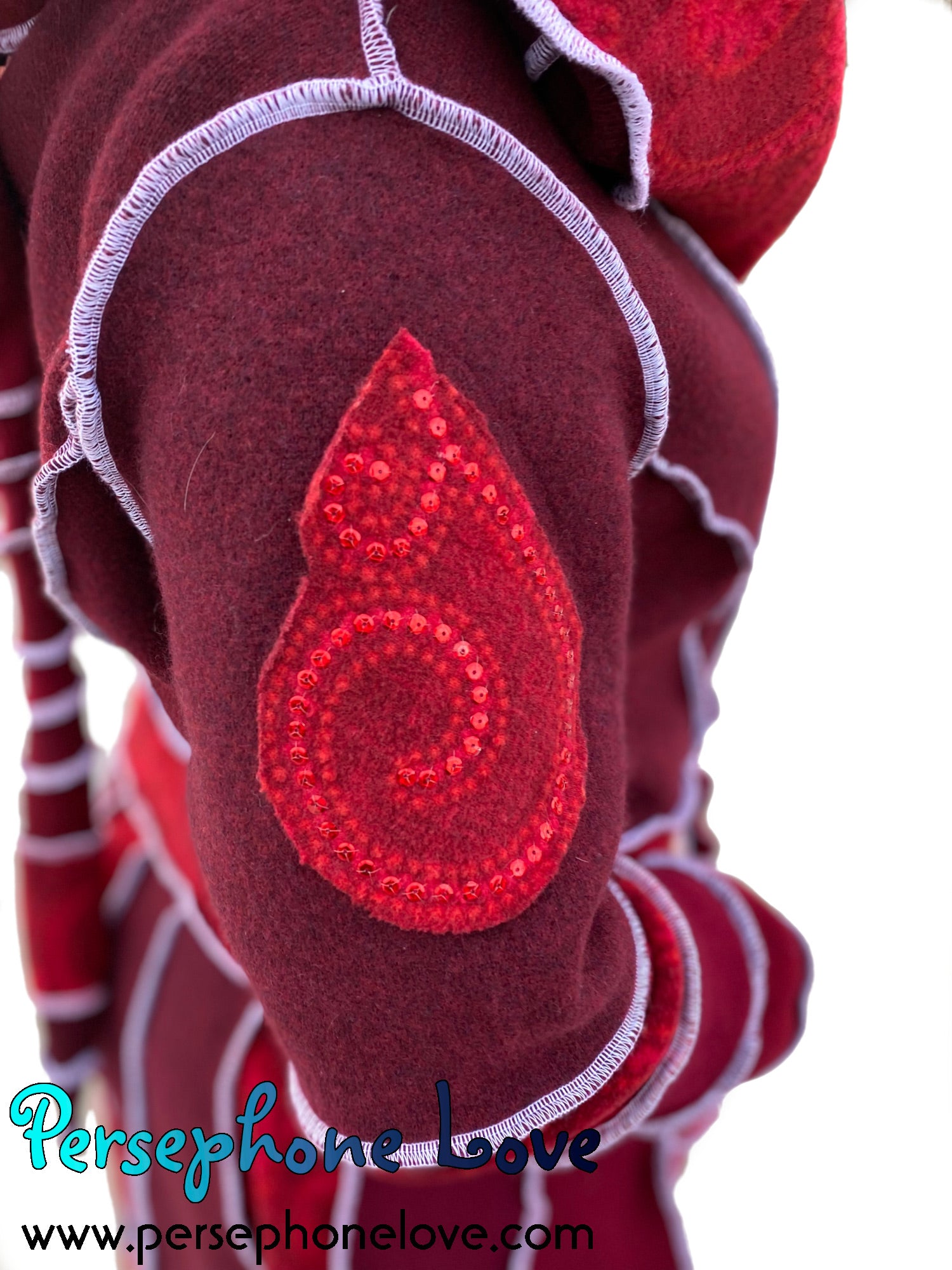 “Utopia” Red pixie felted 100% cashmere/fleece Katwise-inspired sequin sweatercoat-2552